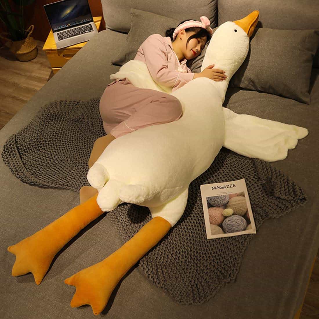 Peluche de ganso almohada juguete, lindo gigante blanco