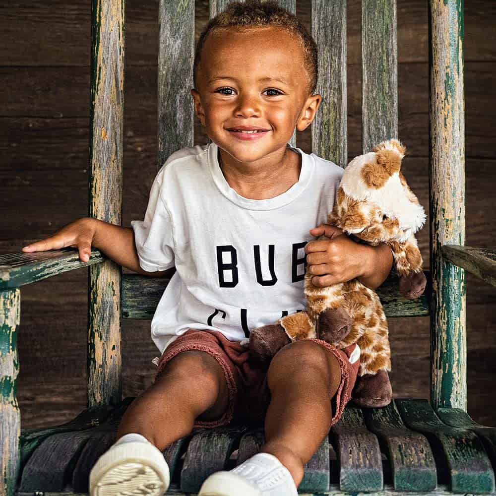Mucho más que un peluche, Buddy Jirafa es un mejor amigo que dura toda la vida. Lo diseñamos con extremidades largas para que sea fácil de llevar, y sus pezuñas tienen frijoles ponderados para hacerlo extra mimoso. A los niños les encanta su linda cola y cuernos, y el pelaje corto y suave es ideal para abrazar. Una etiqueta debajo de la cola tiene espacio para un nombre e información para que Jirafa siempre encuentre el camino a casa si se queda accidentalmente atrás. Garantizado de por vida.