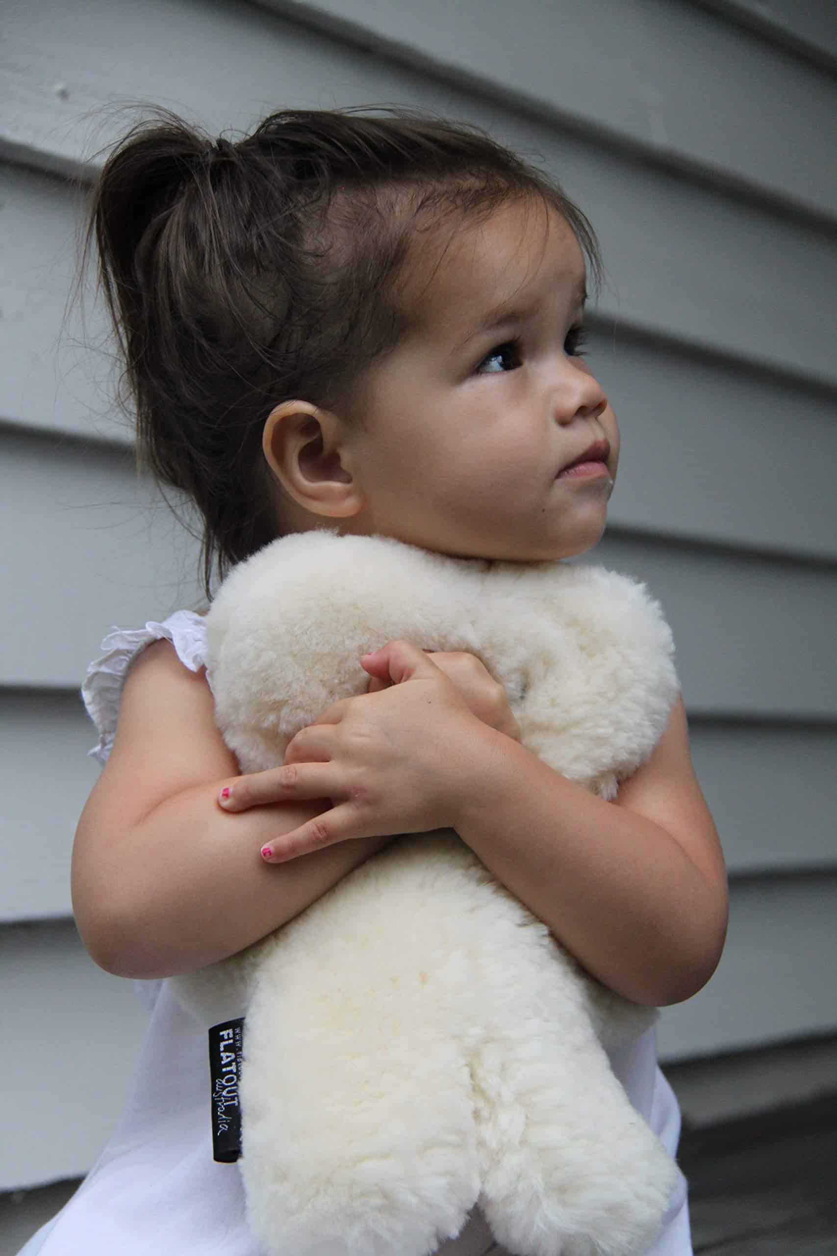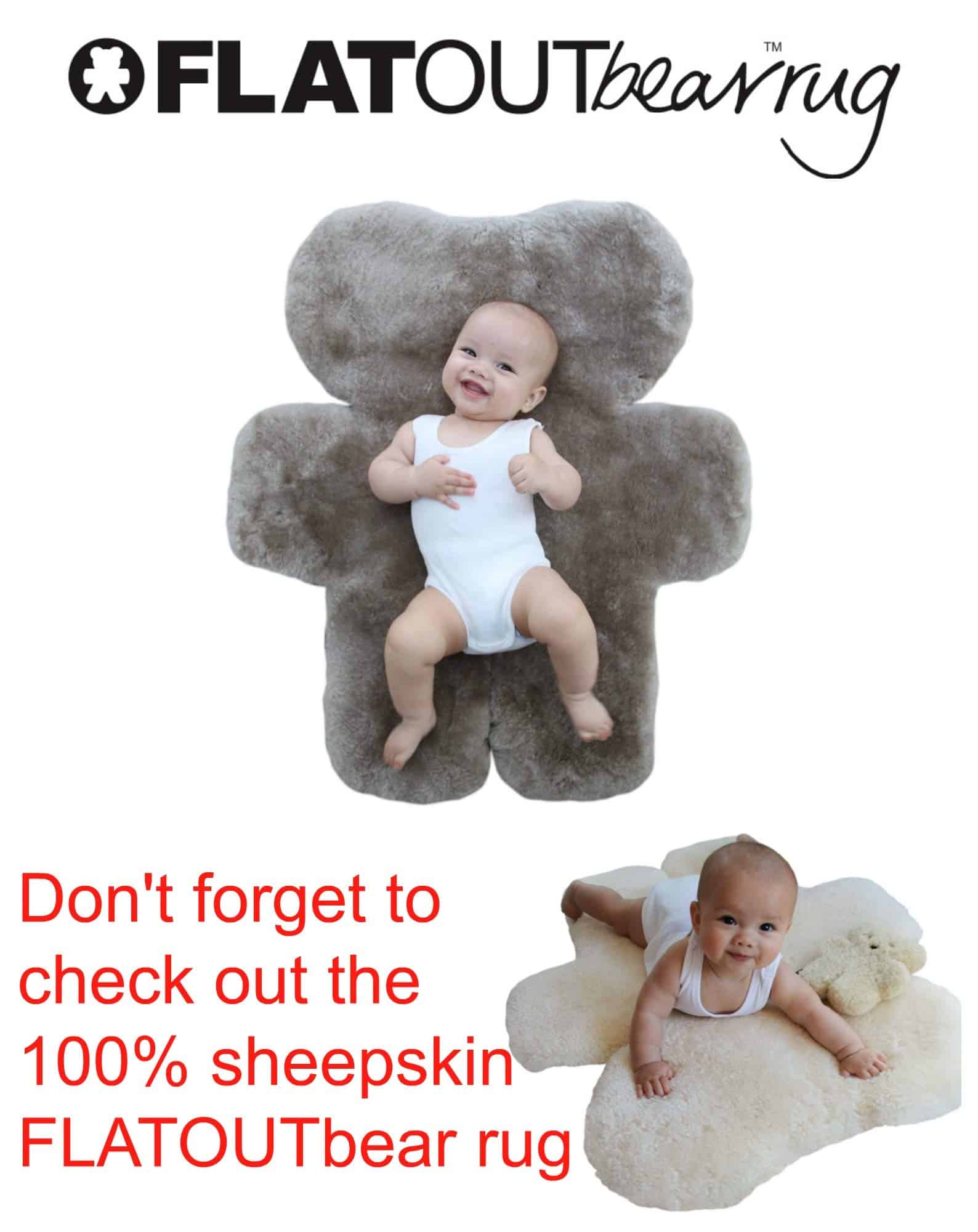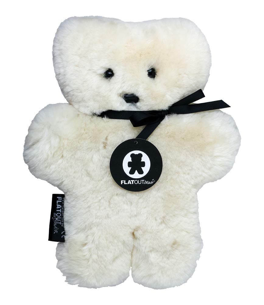 Suave, abrazable y plano, el FLATOUTbear está hecho de piel de oveja australiana al 100% con forma de oso de peluche. ¡Es el FLATOUTbear ORIGINAL! El FLATOUTbear es natural, lujoso y perfecto para bebés, niños, abuelas. Qué podemos decir, a todo el mundo le encantan los FLATOUTbears. Los FLATOUTbears son el perfecto consolador (amigo) natural y compañero de sueño para los niños. El FLATOUTbear es el oso de peluche plano original, establecido en Sídney, Australia en 2001 por nosotras, las hermanas Sarah y Prue. Vendemos los FLATOUTbears en toda Australia y ahora en el mundo. Los FLATOUTbears también tienen una base de fans de estrellas incluyendo a la princesa Mary de Dinamarca, Brooke Shields y Hugh Jackman. Sarah Jessica Parker calificó el FLATOUTbear como ‘encantador y adorable’, Tom Cruise lo tenía en su lista de deseos para bebés, Jennifer Garner ‘lo adora’ y Kourtney Kardashian blogueó sobre el FLATOUTbear como un ‘regalo lindo para bebés’ y ‘formas elegantes de acogedorar una habitación de niños’. Creemos que cada niño merece un FLATOUTbear. NOTA: Sugerimos seguir las pautas de SIDS así como utilizar un enfoque de sentido común al darles a los niños un FLATOUTbear. Como con cualquier cosa, sugerimos supervisión parental y esperamos que el FLATOUTbear se convierta en un miembro muy querido de tu familia.