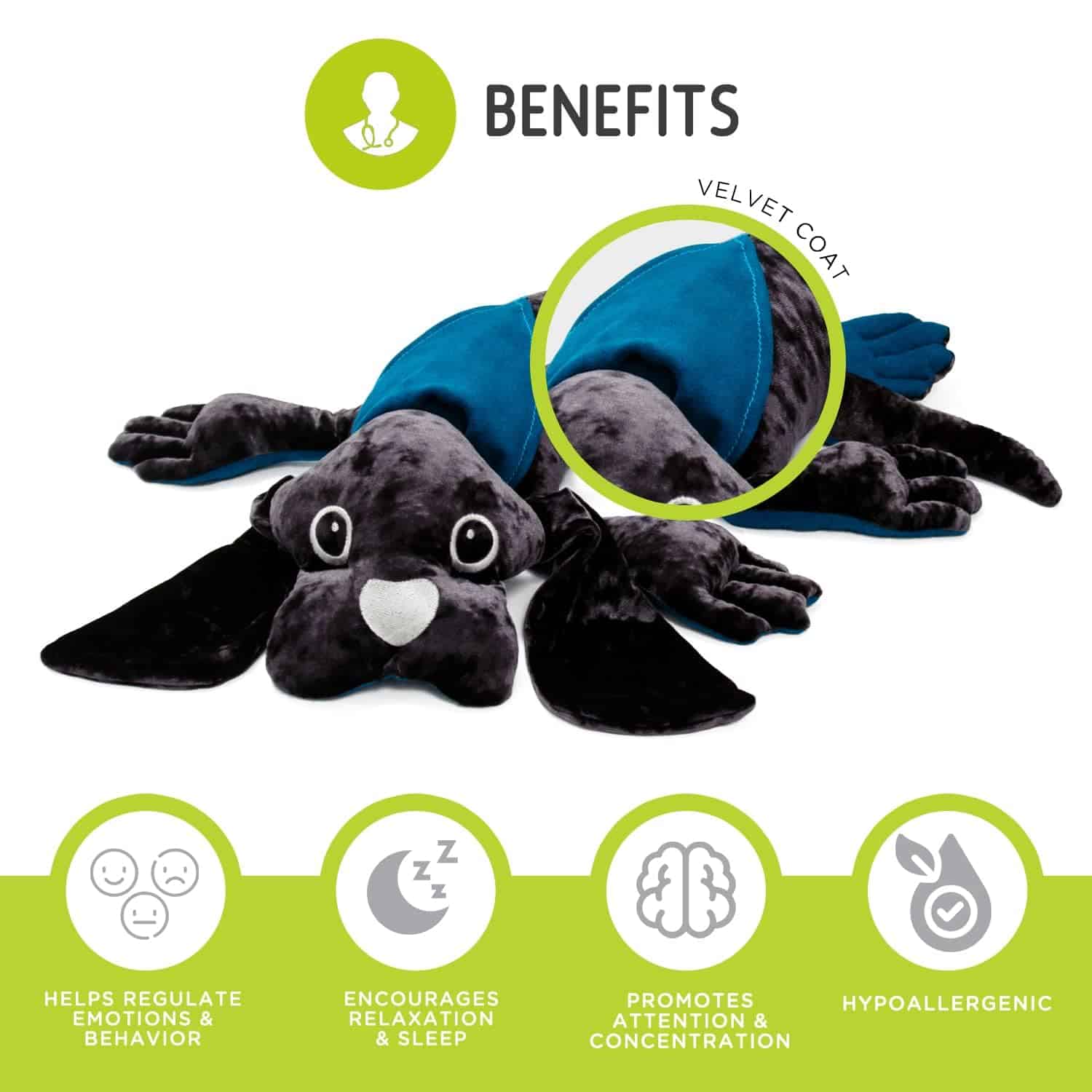 Adopta este adorable manimo como tu nuevo compañero de relajación. Está científicamente probado que ayuda a reducir el estrés y la ansiedad calmando tu sistema nervioso, para que puedas relajarte. El peluche con peso está diseñado para colocarse perfectamente en tu regazo, hombro, pecho o piernas para ayudarte a sentirte reconfortado y calmado. Las texturas suaves son increíbles para distraer tus manos, para que puedas concentrarte en escuchar, o para brindar una distracción sensorial que te ayude a conciliar el sueño más rápido. Ideal para cualquier persona mayor de 3 años, ¡este es un complemento indispensable para cualquier hogar! Perfecto para personas que se distraen fácilmente, ansiosas o nerviosas, simplemente abrázate a tu nuevo amigo para sentir un alivio instantáneo. Fácil de limpiar, lavar a mano en agua fría con un detergente suave, no retorcer y secar extendido. El peluche está hecho de materiales superiores y relleno con cuentas de polietileno no tóxicas para proporcionar una distribución de peso uniforme. manimo dog 2.2 lb es un galardonado con el prestigioso Mom’s Choice Award. Los Mom’s Choice Awards (MCA) evalúan productos y servicios creados para padres y educadores y son ampliamente reconocidos por establecer el estándar de excelencia en productos y servicios familiares. Utilizando un riguroso proceso de evaluación, los participantes se puntúan en varios elementos, incluyendo calidad de producción, diseño, valor educativo, valor de entretenimiento, originalidad, atractivo y coste. En todo el mundo, padres, educadores, minoristas y miembros de los medios de comunicación confían en el sello MCA Honoring Excellence para seleccionar productos y servicios de calidad para familias y niños.