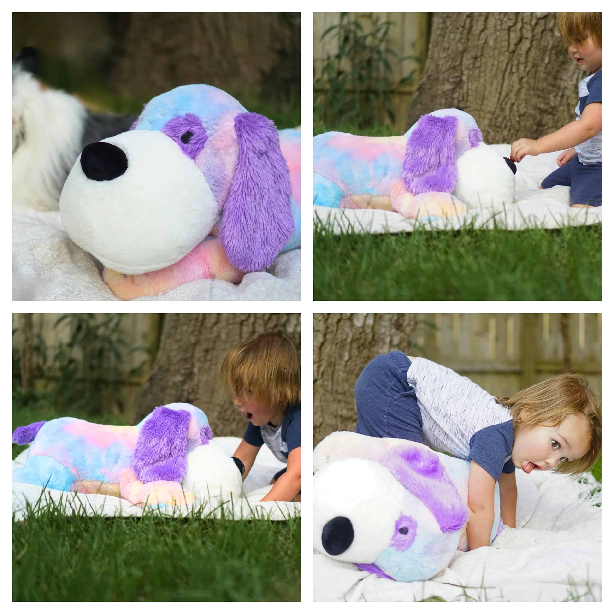 4. Tamaño y color adecuados: Este peluche de perro mide 26.8» x 14.6» x 9.75», lo que lo hace conveniente para propósitos de almacenamiento y exhibición. Nuestro gran perro de peluche viene en un patrón divertido y colorido que tanto niños como adultos adorarán, añadiendo un toque de color y personalidad.