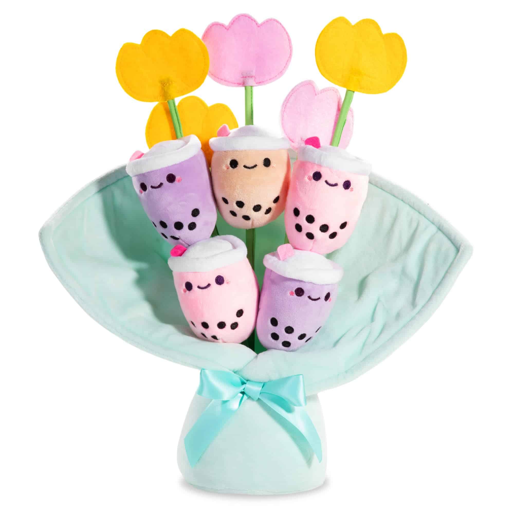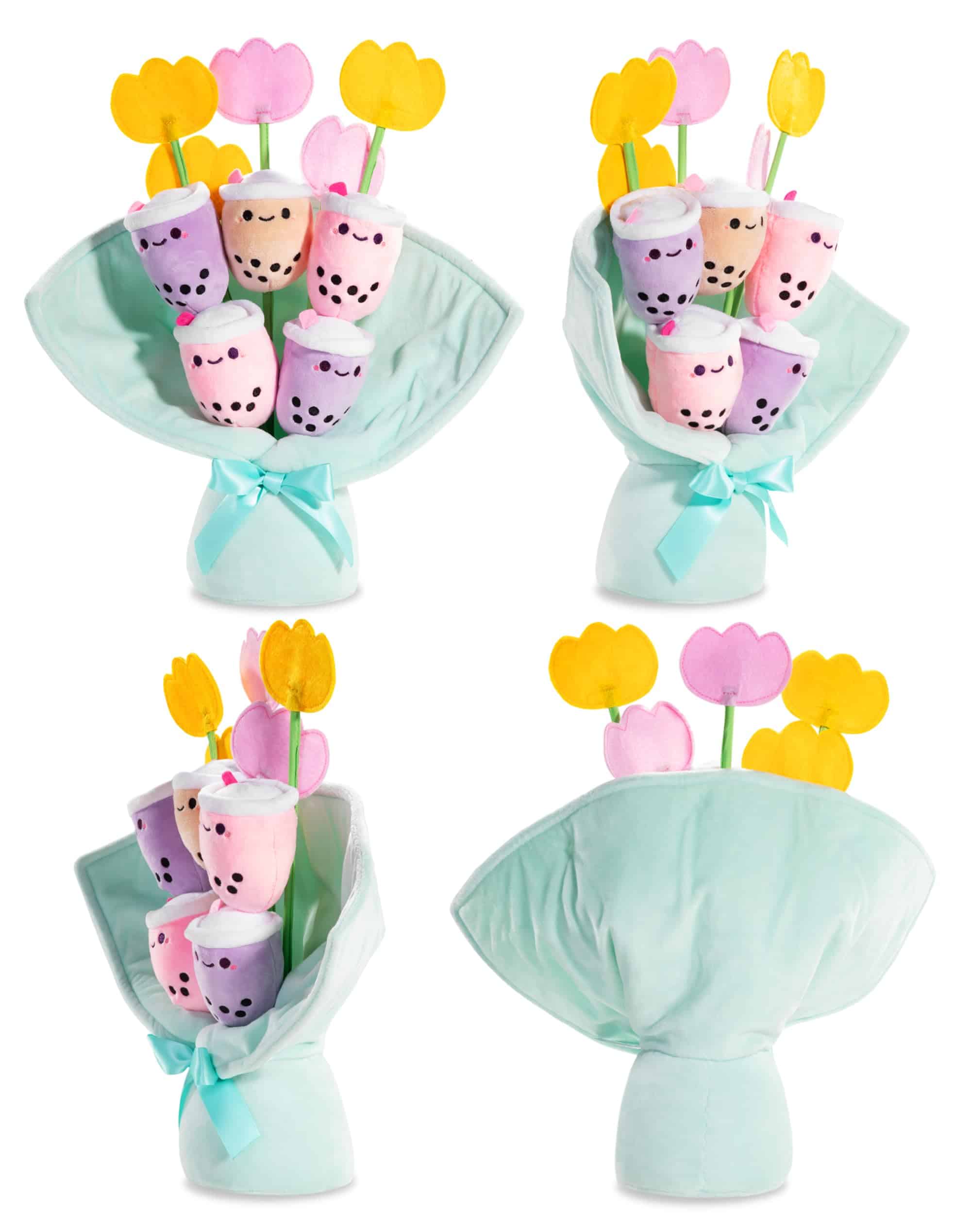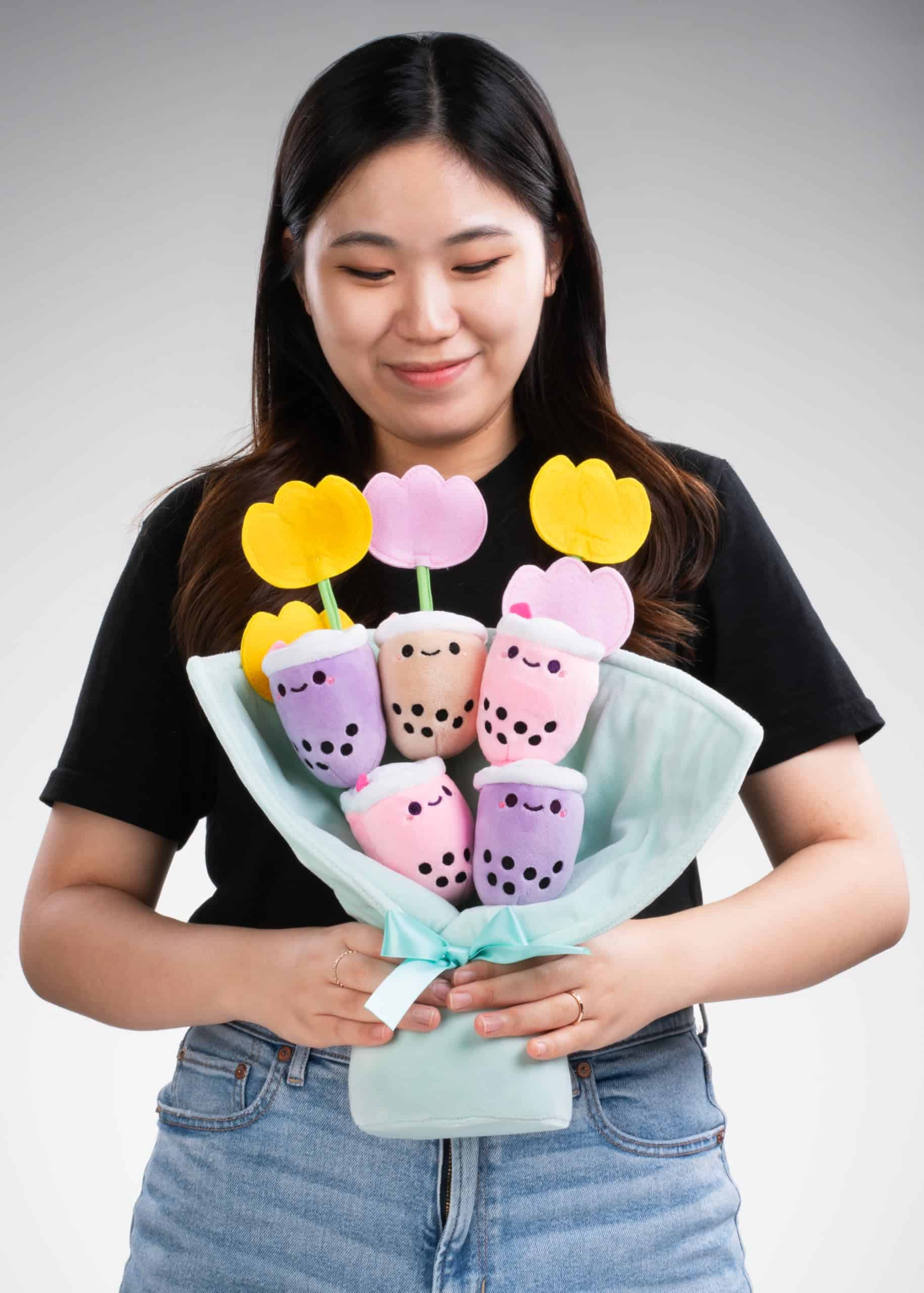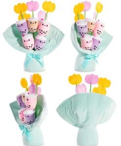 ¿Buscas un regalo un poco más único y duradero que simplemente flores? Nuestro Peluche de Ramo de Té de Boba de Perlas seguramente será un éxito. Regala a tu amigo amante del té de boba este paquete tan adorable de peluches de té de burbujas en colores pastel y tulipanes de dibujos animados, todo envuelto en papel de terciopelo suave y atado con cinta de satén. Su felicidad durará para siempre. ¡Al igual que este ramo!