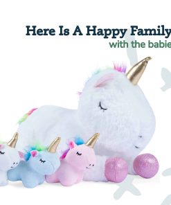 Regalo Mágico de Unicornio para Niñas de Todas las Edades Un regalo gigante y acogedor para niñas pequeñas, adolescentes y amantes de los unicornios de todas las edades que hará que su ocasión especial sea aún más mágica. Hace un gran regalo de cumpleaños o Navidad para alguien que está completamente enamorado de los unicornios. ¡Imagina su sorpresa cuando descubran que hay más de uno! Un Juguete Abrazable Se Convierte en Cinco Amigos Abrazables ¡Simplemente abre la barriga del mamá unicornio acogedor y saca los 4 bebés unicornios extremadamente lindos y adorables y tu niña tendrá un grupo instantáneo de amigos para una merienda o pijamada! Tu niña decidirá que esto es lo que más le gusta abrazar y acurrucar (después de ti, por supuesto). Nuestra familia de unicornios de peluche con características ultra suaves se convertirá en los compañeros perfectos para la hora de dormir y jugar. Se ve y se siente increíblemente mullido Este adorable peluche de unicornio mamá viene con un cuerpo extremadamente suave, cuerno metálico dorado, pezuñas rosa brillante y melena y cola arcoíris. Los 3 bebés unicornios igualmente lindos (blanco, rosa, azul) también vienen con cuerpos suaves, cuernos metálicos dorados, melena y cola arcoíris al igual que mamá.