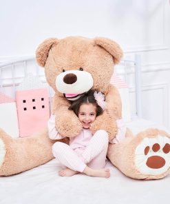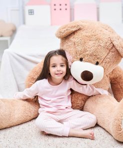 Este gran peluche de oso de peluche es amigable con la piel y respetuoso con el medio ambiente, será un gran regalo para cumpleaños y festividades. Su diseño abrazable puede reconfortar a tus hijos, también se puede utilizar para decorar la guardería infantil. El oso de peluche es enorme, por lo que puede acompañar a tu hijo durante mucho tiempo.
