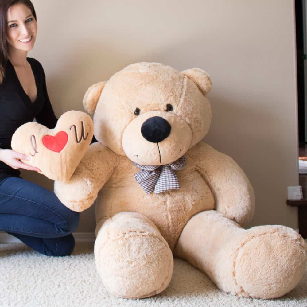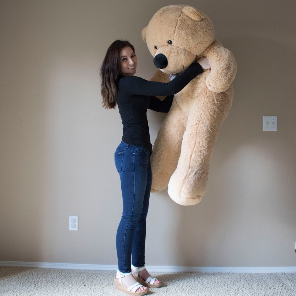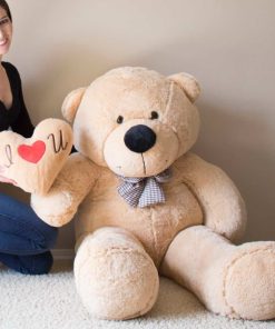 Oso Teddy Gigante de 5 Pies. Nada genera tanta alegría y comodidad como un peluche. Los osos de peluche se han convertido en el regalo preferido para ocasiones especiales como el Día de San Valentín y Navidad. ¡Obtener tu propio oso Teddy de YesBear en tu cumpleaños también es una sorpresa bien recibida! Este regalo es suave y abrazable, lo que lo convierte en la forma ideal de mostrar amor y admiración. ¿Por qué optar por un oso de peluche de tamaño normal cuando puedes ir a lo grande Este oso teddy gigante ofrece más amor y cariño para esa persona especial. Este oso teddy gigante de 5 pies es grande en estatura y diversión. Colócalo junto a una silla o una persona y nota lo grande que es este oso teddy gigante por ti mismo. Este peluche de 5 pies es mullido y suave para hacerlo el compañero abrazable perfecto. Está hecho solo con materiales de alta calidad, que ofrecen durabilidad. Con ojos negros y una nariz negra visible, las características solo agregan a la ternura. En lugar de llevar tu oso de peluche contigo, ahora puedes trepar sobre tu oso teddy gigante diseñado para ofrecer abrazos más grandes. Edad mínima del fabricante: 2 años en adelante.