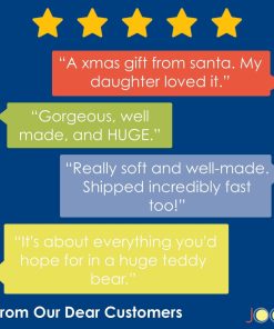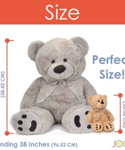 No hay mejor manera de mostrar tu amor y admiración por alguien especial que con el Peluche Gigante JOON con Cinta. No hay nada mejor que un abrazo, pero a veces un abrazo Gigante es más reconfortante. Fabricado con los mejores materiales de poliéster 100%, el Peluche Gigante JOON con Cinta Gris Claro es súper suave, sedoso al tacto y está hecho con la cantidad justa de relleno. ¡Lo suficientemente resistente para resistir abrazos interminables! Con preciosos ojos marrones y una sonrisa que calentará el corazón de cualquiera, ¡este oso de peluche se siente vivo con personalidad y actitud que es imposible resistir! ¡El Peluche Gigante JOON con Cinta AMA descansar, acurrucarse y tomar siestas! Cuando te sientas deprimido, él siempre estará allí para darte el abrazo de oso más reconfortante y al final del día, todas tus preocupaciones y estrés se derretirán en los brazos de tu adorable nuevo compañero. ¡Nunca te hará daño ni te abandonará. ¡El amigo perfecto! El Peluche Gigante JOON con Cinta Gris Claro es un regalo maravilloso para los amantes de los osos de peluche de todas las edades y la forma perfecta de decir «Te quiero». COLOR: Gris Claro. Dimensiones: (23 Pulgadas Sentado)(38 Pulgadas de Orejas a Pie)(23 Pulgadas de Ancho)