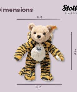 ¡Cuidado, un tigre! O espera un minuto. ¿Es un oso de peluche? Nuestro nuevo oso de peluche con capucha de tigre en realidad es ambos: ¡un oso de peluche cariñoso que se ha puesto un traje de tigre genial! Un amigo perfecto para todos aquellos que, al igual que él, son cariñosos y salvajes al mismo tiempo. Cuando el oso de peluche con capucha de tigre quiere sentirse especialmente valiente, simplemente se pone su capucha de tigre – ¡y a sus 11 pulgadas de altura se convierte en un feroz depredador felino! ¡Pero en ambas apariencias seguirá siendo mimoso!