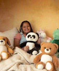 Oh qué dulce es recibir un abrazo de este oso Panda de peluche. Así que comparte el amor y envíalo para sorprender a alguien especial. Adorablemente regordete y encantadoramente de cintura gruesa, este manojo de amor relleno tiene un cuerpo ideal para abrazar. Es sedoso y suave, especialmente mullido y extra redondo, por lo que su factor de abrazo está por las nubes. Y su pelaje contrastante en negro y blanco, sonrisa bordada, orejas peludas y cola esponjosa ciertamente añaden a su enorme atractivo. Rellenado con amor en Vermont, EE. UU. usando relleno 100% reciclado. Garantizado de por vida.