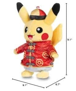 Las celebraciones son muy importantes para Pikachu, ¡por eso está vestido con sus mejores galas festivas! Celebra el Año Nuevo Lunar con el Pokémon Ratón: su abrigo y sombrero están decorados con un tradicional patrón rojo y dorado que simboliza la buena suerte! Mide aproximadamente 9 pulgadas de alto y 4 pulgadas de ancho. Cuenta con material suave y detalles bordados. Un Pokémon de tipo Eléctrico descubierto originalmente en Kanto. Parte de la colección Disfraz de Pikachu: Año Nuevo Lunar. Original del Centro Pokémon. Dimensiones del artículo: 9.1 x 6.7 x 9.1 pulgadas (23.1 x 17 x 23.1 cm). Materiales: Poliéster / espuma de poliuretano / SBS. Instrucciones de cuidado: Lavar a mano únicamente. Secar a la sombra. Peso del artículo: 3.4 OZ