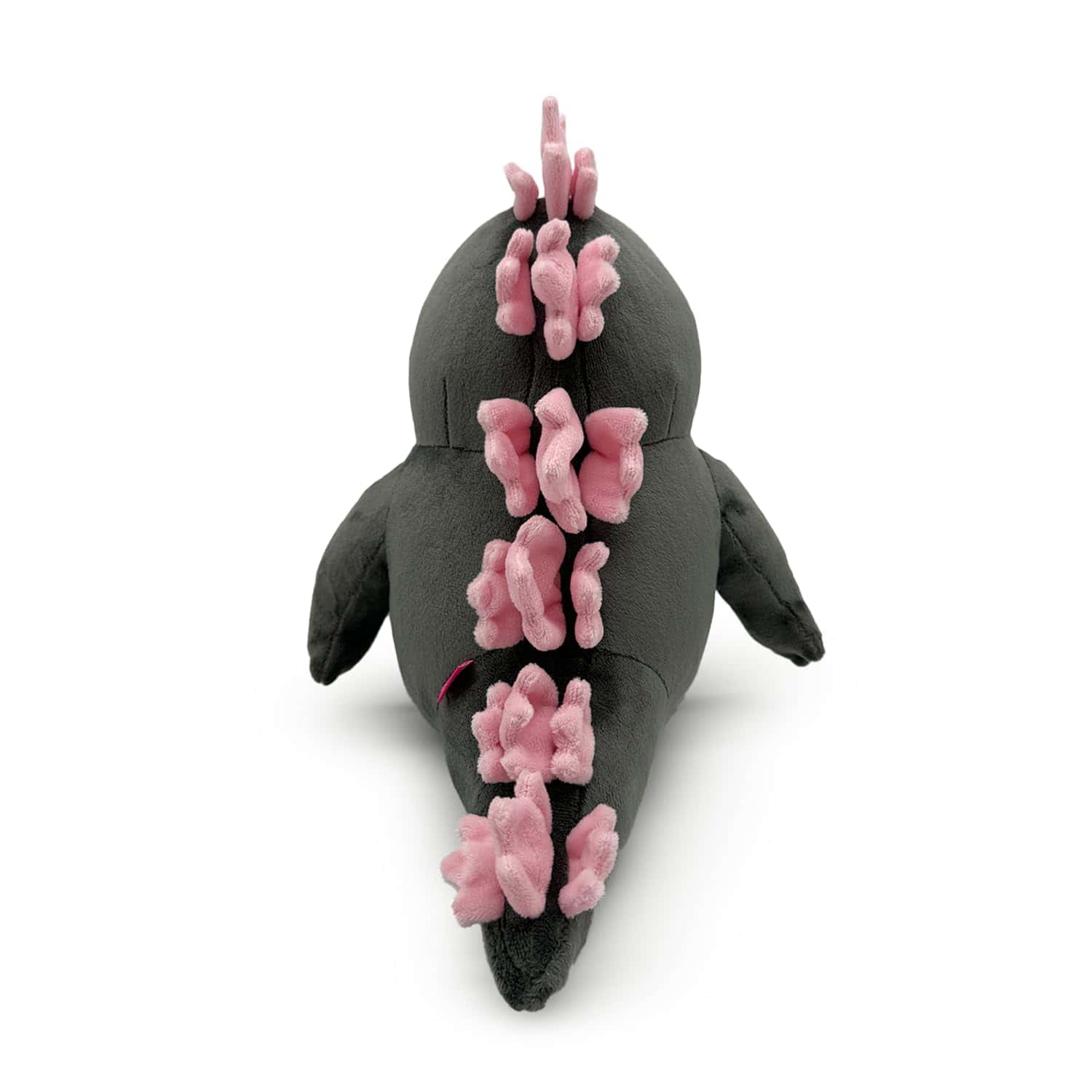 ¡Godzilla regresa a Youtooz más poderoso, y más lindo, que nunca! Sentado a 9 pulgadas de altura con una fila de dientes afilados que cuelgan sobre su ligera mandíbula y cejas fruncidas sobre ojos negros curvados, sus brazos cortos descansan a los lados de un torso grueso. Con una fila de espinas rosadas brillantes que van desde la parte de atrás de su cabeza hasta la cola robusta que sobresale de su espalda, sus patas cortas se extienden hacia adelante con pies con garras apuntando hacia arriba. Este peluche está repleto de algodón PP al 100% y está hecho del material minky más suave, ¡absolutamente perfecto para abrazar o luchar contra titanes!