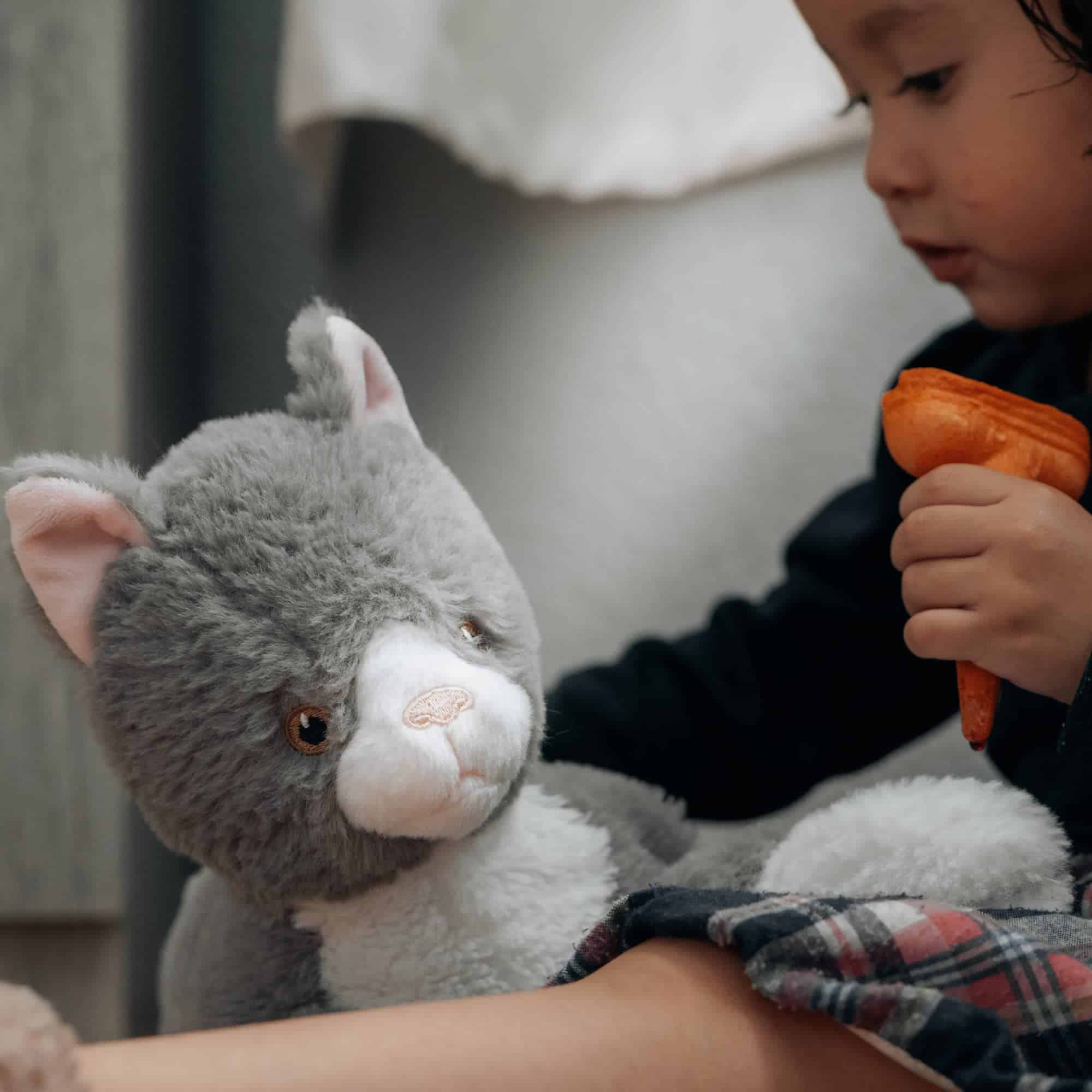 Elige entre nuestras dos adorables variaciones, un gato juguetón o un perezoso relajado, ambos de 20 pulgadas de largo y con un peso de 3.5 libras. Y para una estimulación sensorial adicional, simplemente calienta o congela tu animal para una experiencia personalizada.