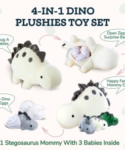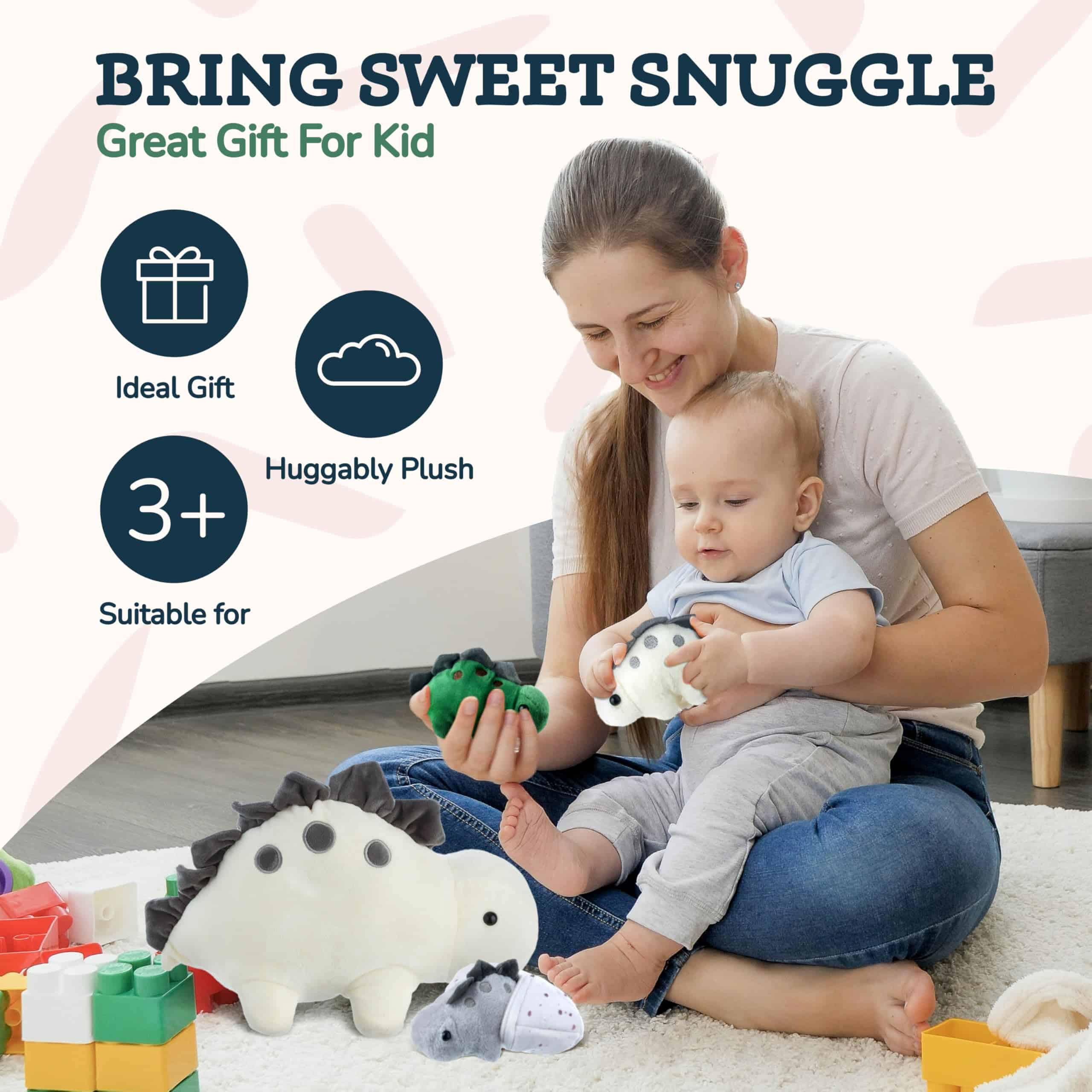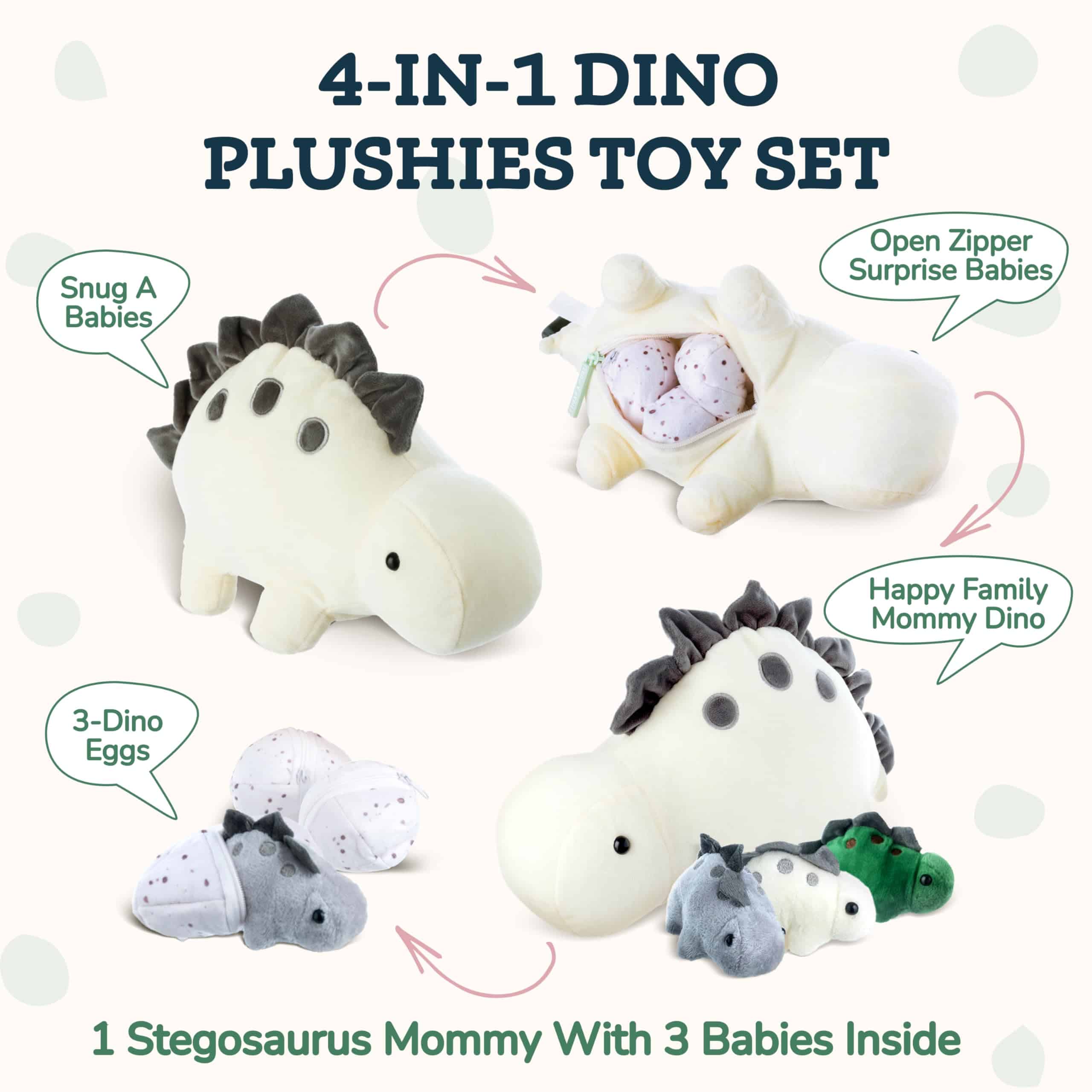 Peluches de Dinosaurios PixieCrush – Mamá Estegosaurio con 3 Bebés en su Vientre – Peluches Cálidos para Juegos de Imaginación – Juguetes de Peluche Adecuados para Niños de 3 Años en Adelante – 13″ x 8.5″ x 3.5″