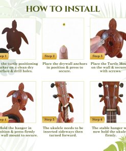 1. Soporte para Ukulele de Pared: Eleva tu espacio con nuestros accesorios de ukulele bellamente diseñados. Este soporte para ukulele colgante cuenta con un intrincado diseño de tortuga, añadiendo un toque de elegancia a cualquier habitación. Viene con un colgador acolchado de goma suave para un agarre sin arañazos.