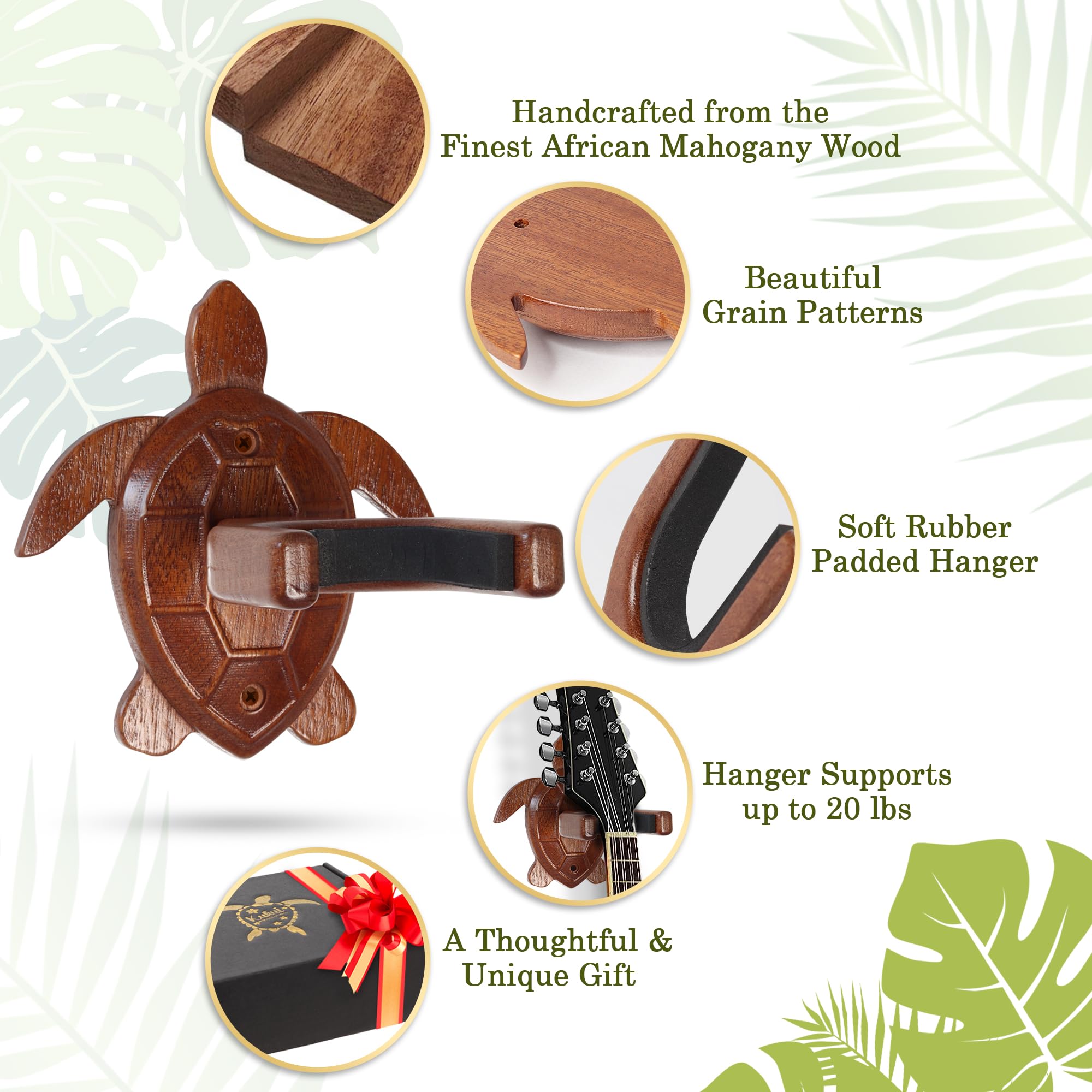 5. Regalo Perfecto: Nuestro gancho para ukulele es un regalo considerado y único para cualquier jugador de ukulele, amante de la música o entusiasta de la naturaleza. Este soporte para ukulele de pared viene en una caja atractiva y está listo para regalar.