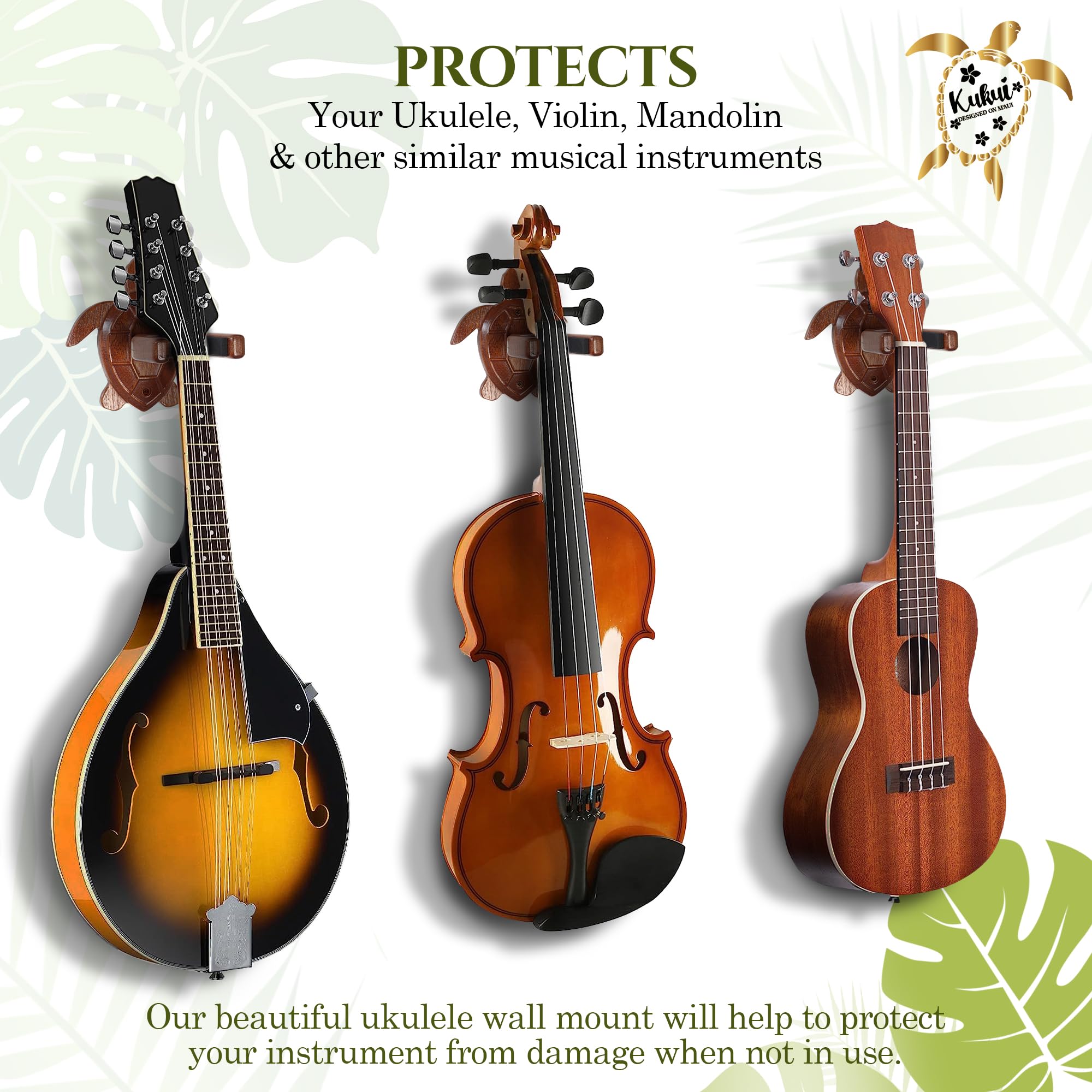 Perchero de Pared para Ukulele Kukui con Acolchado – Fácil