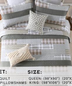 4. Juego de Colcha Queen de 3 Piezas Verde Oscuro Marrón Beige Incluye – 1 Colcha (90 98 pulgadas) + 2 Fundas de Almohada (20 28 pulgadas).
