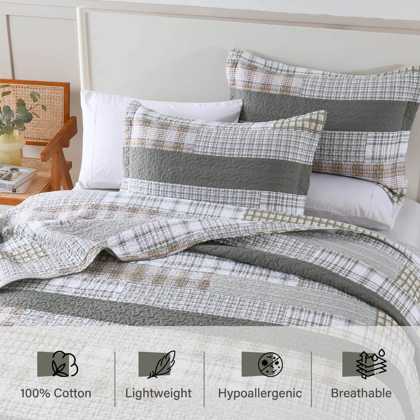1. Colcha de Algodón 100% – Juego de colcha de algodón natural 100%, más saludable y transpirable, suave, amigable con la piel y duradero.