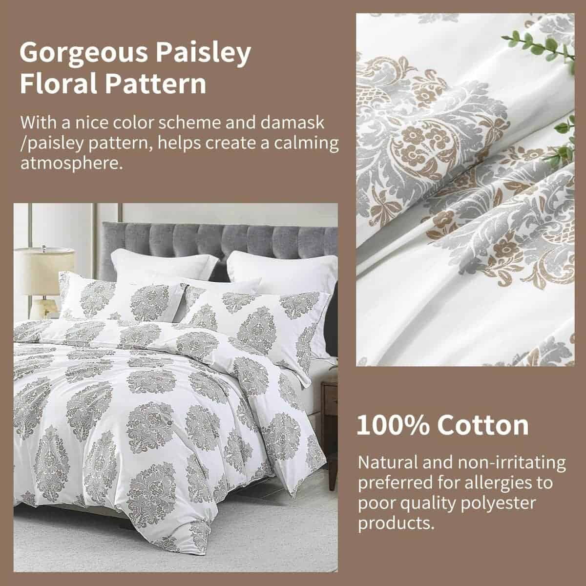 Perhom Funda de Edredón Damasco King – Juego de Funda de