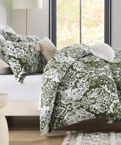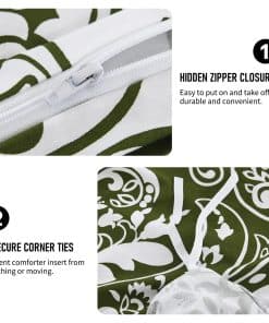 La funda de edredón PERHOM Queen es un producto de calidad fabricado con algodón certificado Oeko-Tex Standard 100, lo que garantiza que es cómoda, transpirable, y duradera. El diseño paisley de la funda de edredón es versátil y combina con cualquier tipo de decoración, agregando un toque de frescura y alegría a su habitación. El cierre de cremallera y los lazos en las esquinas mantienen su edredón en su lugar y lo protegen de moverse durante la noche, garantizándole un sueño tranquilo y reparador. Además, la funda de edredón es lavable a máquina, lo que le permite mantenerla limpia y fresca fácilmente. Este juego incluye una funda de edredón Queen size y dos fundas de almohada a juego. No se incluyen el edredón ni las almohadas. Si busca un set de ropa de cama de alta calidad y con un diseño único, el PERHOM Duvet Cover es la elección perfecta para usted.