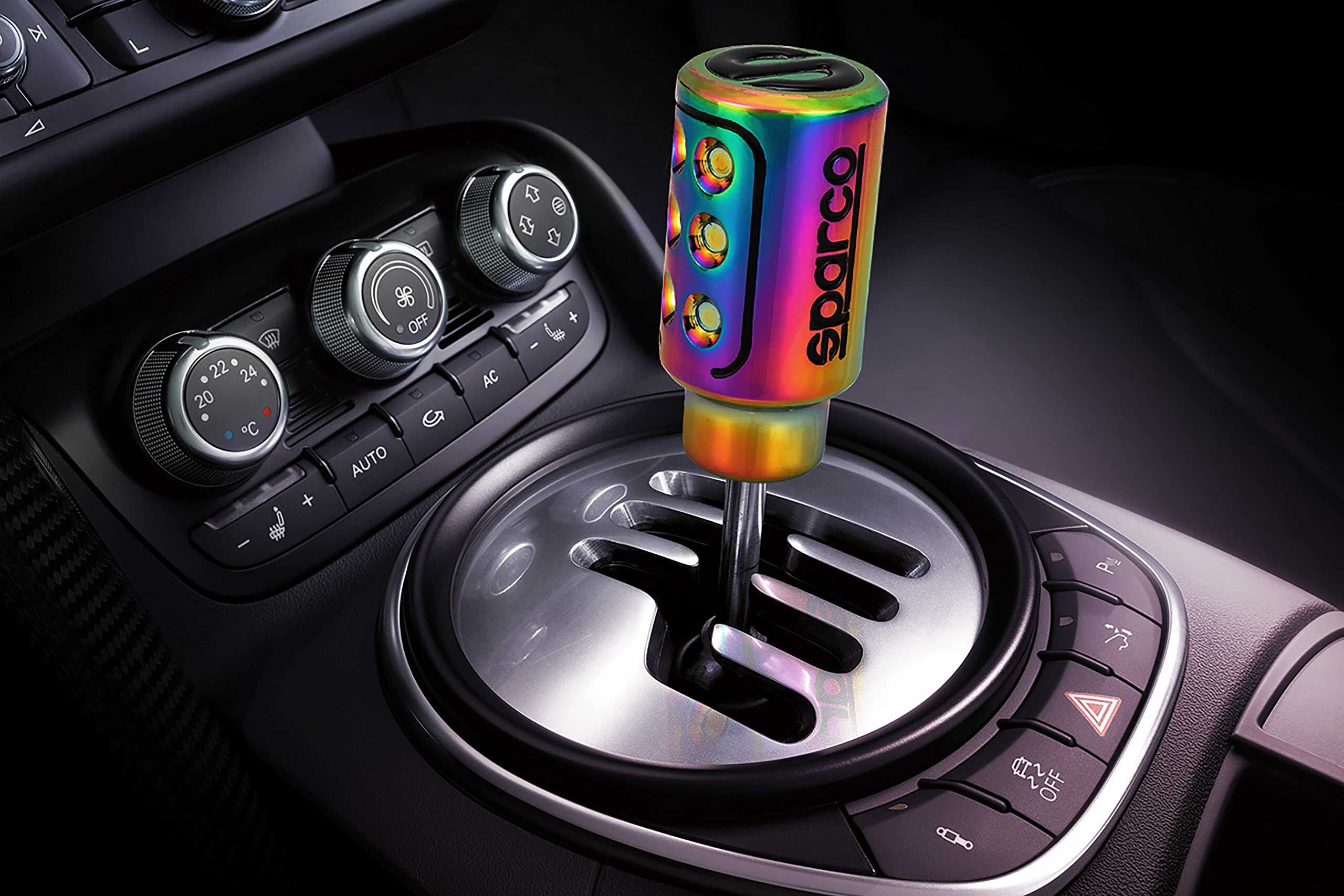 Fantástica perilla de cambio de velocidades Sparco Racing en acabado iridiscente con un diseño elegante y deportivo de calidad superior. Dale de inmediato al interior de tu auto un aspecto distintivo y deportivo con esta perilla de cambio de velocidades con logo grabado de Sparco. Hecho de aluminio sólido de alta calidad. Sparco siempre trabaja con los más altos estándares de calidad para ofrecer un producto de calidad superior. Muy fácil de instalar. Con 3 cánulas para un ajuste perfecto e instrucciones de montaje para una instalación rápida y sencilla. Este modelo de perilla de cambio de velocidades está disponible en varios colores.