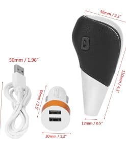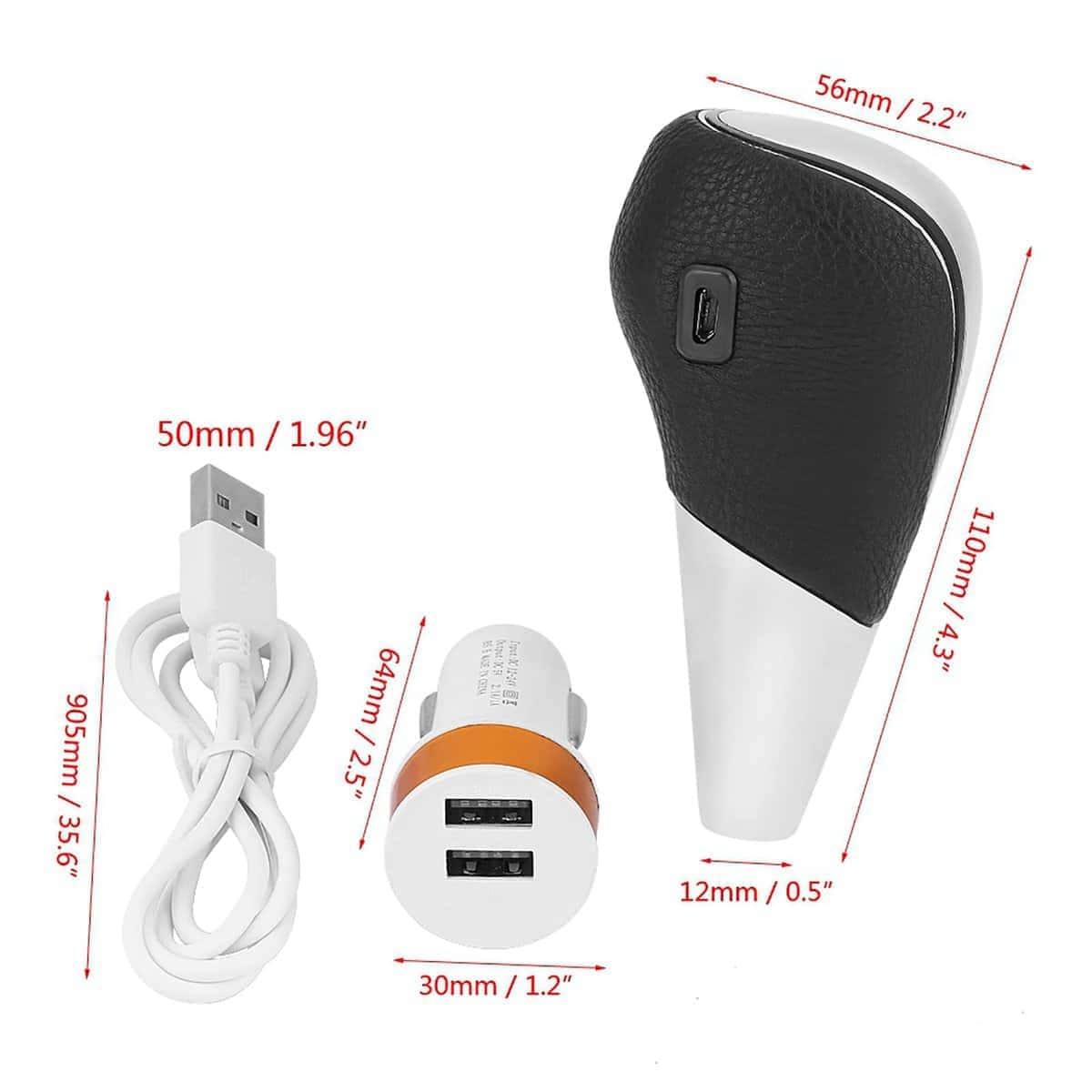 6. DISEÑO ESPECIAL: La perilla de cambio tiene un diseño especial con una luz LED incorporada, que se puede activar simplemente tocándola. La luz LED permanecerá encendida durante 30 segundos y luego se apagará automáticamente. El LED es alimentado por una batería interna, que se puede cargar a través del cargador USB del encendedor de cigarrillos incluido, incluso en la carretera.