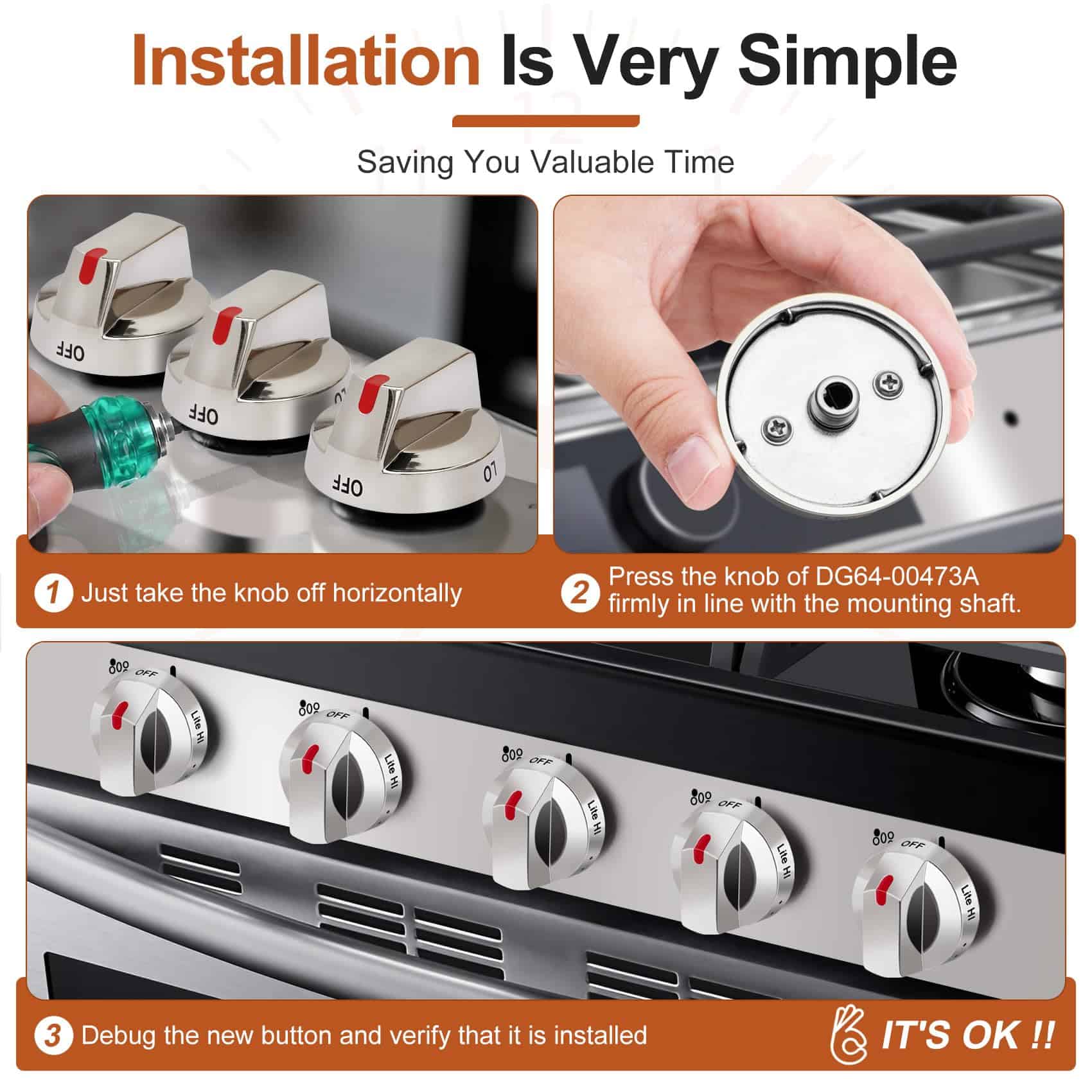 Introducción: La perilla del quemador de superficie DG64-00473A le permite controlar el calor del quemador de superficie en el rango. Compatible con horno, rango o estufa Samsung. Reemplace los números de parte: DG64-00473A, DG64-00473B, 3447565, AP5917439, PS9606608, B01GV9ZRM4, EAP9606608. Condición: 100% nuevo. Tamaño: 2.4 pulgadas / 6.09 cm de diámetro, 1.5 pulgadas / 3.81 cm de altura. Paquete incluye: 5 perillas de rango DG64-00473A. Función: Control de quemador. Compatible con varios modelos de la marca Samsung. Nota cálida: Si no está seguro de que nuestra pieza de repuesto se ajuste a su modelo de electrodoméstico, ¡estamos encantados de ayudar!