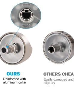 La perilla de control WB03X32194 regula el calor de la quemador de la superficie en la cocina. Actualizado con anillo protector de metal en el tallo para evitar que se rompa. Por favor, tenga en cuenta: algunos cocinas de gas GE utilizan 2 tipos de perillas, 5 Perillas de Control de Quemador WB03T10329 y 1 Perilla de Bloqueo de Control WB03T10320. Este paquete contiene solo la Perilla de Control de Quemador WB03T10329. La Perilla de Bloqueo de Control WB03T10320 NO está incluida. Diseñado para Cocinas de Gas y Quemadores de Rango GE. Fabricado en acero inoxidable. Compacto y resistente. Reemplazar los números de parte WB03T10329, WB03X32194, WB03X25889, 4920893, AP6837585, PS12709871, EAP12709871, etc. Compatible con modelos: CGP350SET1SS, CGP350SET2SS, CGP350SET3SS, CGP350SET4SS, CGP650SET1SS, CGP650SET2SS, CGP650SET3SS, CGP650SET4SS, etc. Extremadamente fácil de reemplazar, no se requieren herramientas. Asegúrese de que la posición de «APAGADO» de la perilla esté centrada en la parte superior, luego simplemente retire la perilla tirando rectamente de su poste. Se proporciona garantía de 1 año, reemplazo gratuito por cualquier problema de calidad. Si tiene alguna pregunta, no dude en contactarnos.
