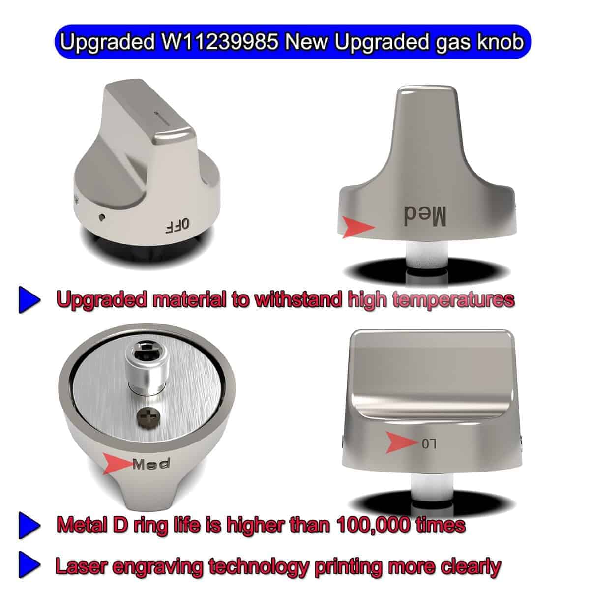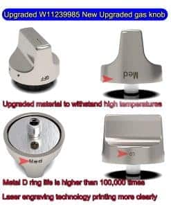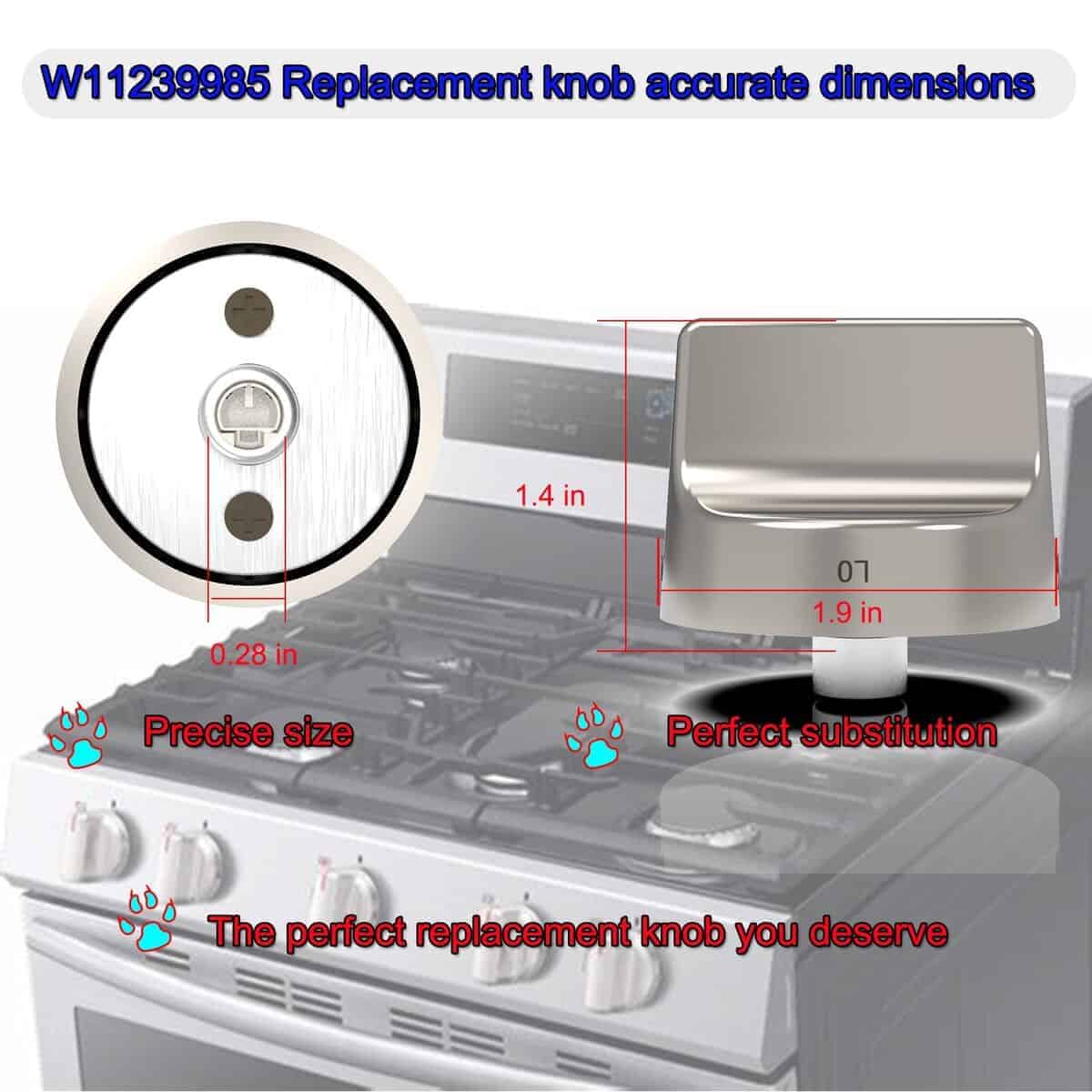 1. Visión general del producto: la perilla de control de la estufa W11239985 es compatible con las perillas de la parte superior de la estufa Whirlpool, piezas de perillas para, reemplaza AP6333411, 4845290, PS12578779, W11032553, W10850015.