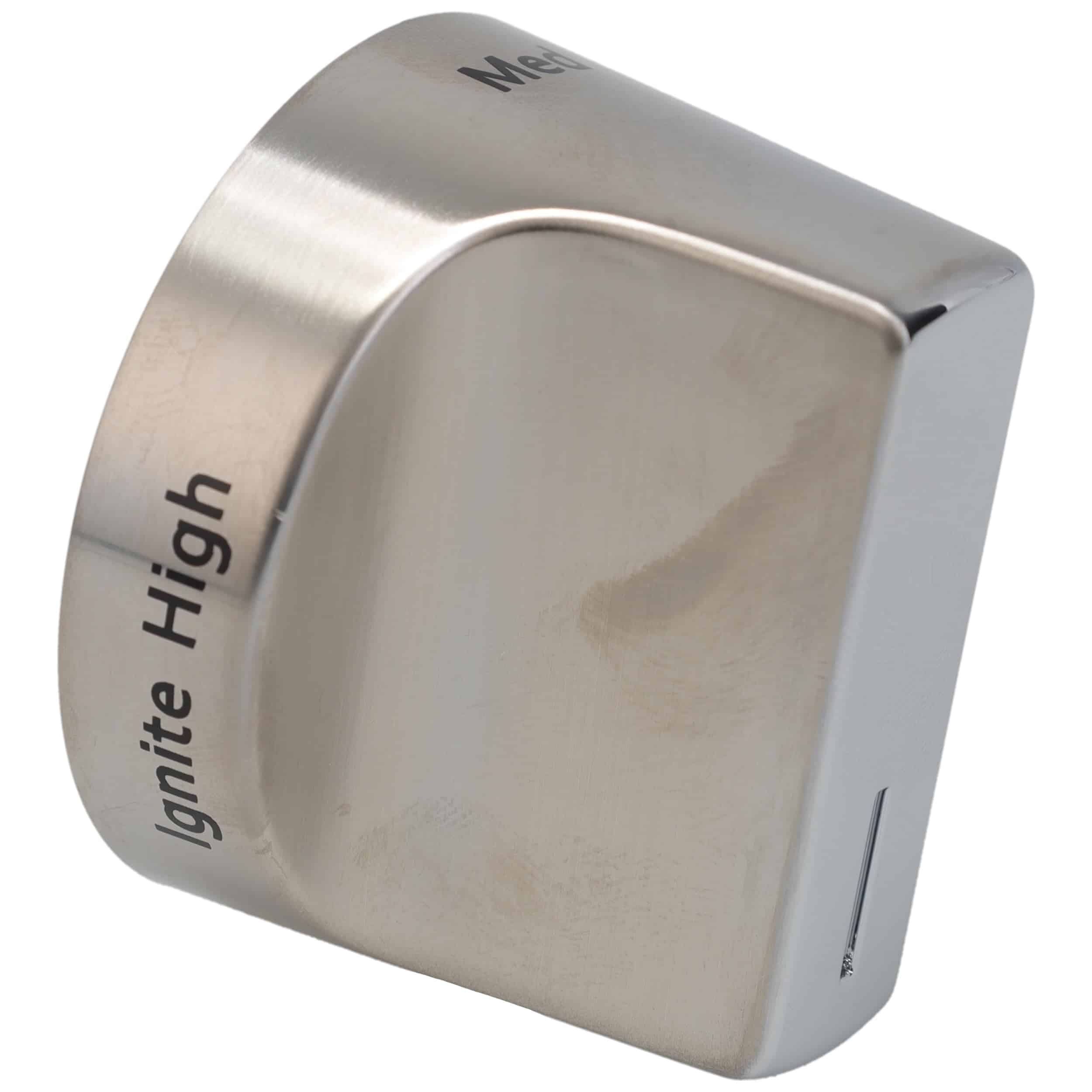 2. (1) Perilla de acero inoxidable | 1-3/4 pulgadas de diámetro | 1-1/2 pulgadas de alto | Se ajusta a rangos específicos de modelos.