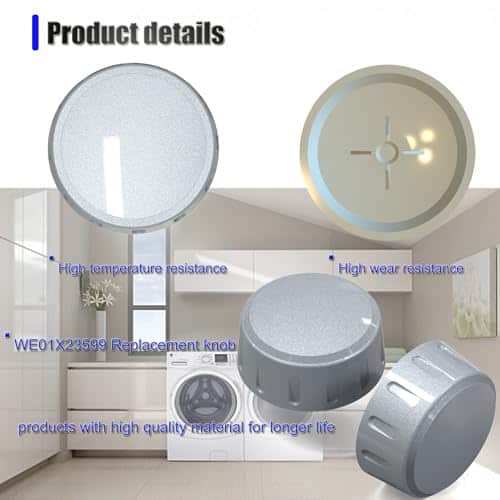 La perilla de lavadora WE01X23599 es un reemplazo perfecto para lavadoras secadoras GE. Cumple con el estándar OEM. La perilla de lavado de nueva mejora está hecha de plástico ABS de alta resistencia con ventajas de resistencia a la corrosión, resistencia a altas temperaturas y fuerte refuerzo. La superficie de la perilla se trata con tres capas de recubrimiento: capa de evaporación, capa brillante y capa dura curable UV. Instalación sencilla sin herramientas ni tornillos. Presta atención al caso principal. Alinee y ajuste cuidadosamente la perilla de lavadora GE. No la fuerce. Es importante desconectar la lavadora de la fuente de alimentación y agua antes de hacer el servicio. Garantía posventa. Si tiene alguna pregunta, contáctenos. No solo está comprando un producto, sino también nuestro completo servicio posventa. Cualquier problema, solo un correo electrónico, lo resolveremos en un plazo de 12 horas.
