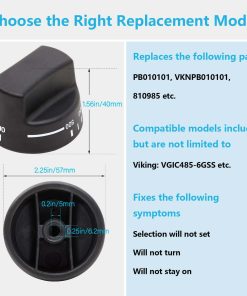 La perilla de termostato horneado Reyhoarr es un reemplazo directo para el termostato horneado en su cocina. Esta perilla acepta un eje en forma de D. No se necesitan herramientas para completar esta reparación. Una perilla de termostato horneado que se ajusta directamente como reemplazo para su perilla desgastada, rota o faltante. Arregla los siguientes síntomas: 1. No se configurará el horneado 2. No se encenderá 3. No se mantendrá encendido. Especificaciones: 1. Nombre del modelo: Perilla de termostato horneado PB010101 2. Material: Plástico ignífugo 3. Color: Negro 4. Dimensiones del producto: 2.18″ x 1.53″H (55 x 39 mm) 5. Diámetro del agujero de instalación: 0.24″ (6.1 mm) 6. Cantidad: 1 pieza
