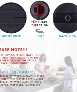 Perillas de cocina de gas W10339442, Repuesto de perillas de control de quemador de superficie de cocina negra, Compatible con cocina/horno de gas Whirlpool, Reemplaza WPW10339442 PS11753188 (paquete de 2). Versión duradera mejorada: las perillas de cocina de gas TURNEGOO parte W10339442 son el diseño mejorado basado en investigación de mercado. Las perillas de la estufa están hechas de plástico ABS de alta resistencia con la ventaja de resistencia a la corrosión, resistencia a altas temperaturas y fuerte refuerzo. Para que se pueda instalar de manera más segura, duradera y resistente y prolongar la vida útil. Reemplazo directo: las perillas de estufa TURNEGOO coinciden estrechamente con la estufa de gas original de Whirlpool. La apariencia y la función son exactamente iguales a la perilla de estufa original para la estufa de Whirlpool, es el reemplazo directo de las perillas de la estufa de Whirlpool. Repuestos de perillas: Número de parte de reemplazo W10339442, WPW10339442VP, 2311008, AP6019877, PS11753188, EAP11753188, W10339443, WPW10339443, 2311009, AP5331724, PS3507189, EAP3507189. Compatible con: Es compatible con la Gama de Gas de la Serie Whirlpool WFG320, WFG505, WFG510, WFG520, WFG524. Por favor, verifica el modelo o número de parte cuidadosamente. Fácil instalación: No se requieren herramientas – Es fácil instalar la parte TÚ MISMO y hacer que funcionen rápidamente los quemadores de su horno de gama en pocos minutos. La satisfacción del cliente es nuestra incansable búsqueda.