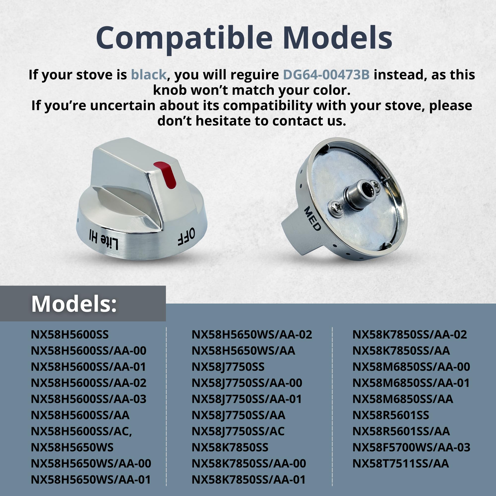 Perillas de Estufa de Repuesto para Samsung Gas Range – Perilla de Control de Horno Parte Superior Compatible con X58H5600SS NX58H5650WS NX58K7850SS NX58J7750SS NX58K7850SS NX58M6850SS (5). Este juego de perillas de estufa DG64-00473A es un ajuste perfecto y compatible con varios modelos de Samsung Gas Range. Incluye una perilla de control de horno de repuesto que es una solución asequible para reparar un rango de estufa con perillas dañadas, agrietadas o rotas. Las perillas de estufa están diseñadas con un agujero en forma de D reforzado con una lámina de hierro adicional, lo que las hace más resistentes al desgaste y la deformación. Fáciles de instalar, estas perillas de estufa ofrecen un ajuste exacto y una función similar a las perillas del fabricante de equipo original (OEM). ¡Reemplaza tus perillas de rango rotas y restaura la funcionalidad de tu estufa de manera rápida y sencilla con este juego de perillas de estufa de alta calidad!