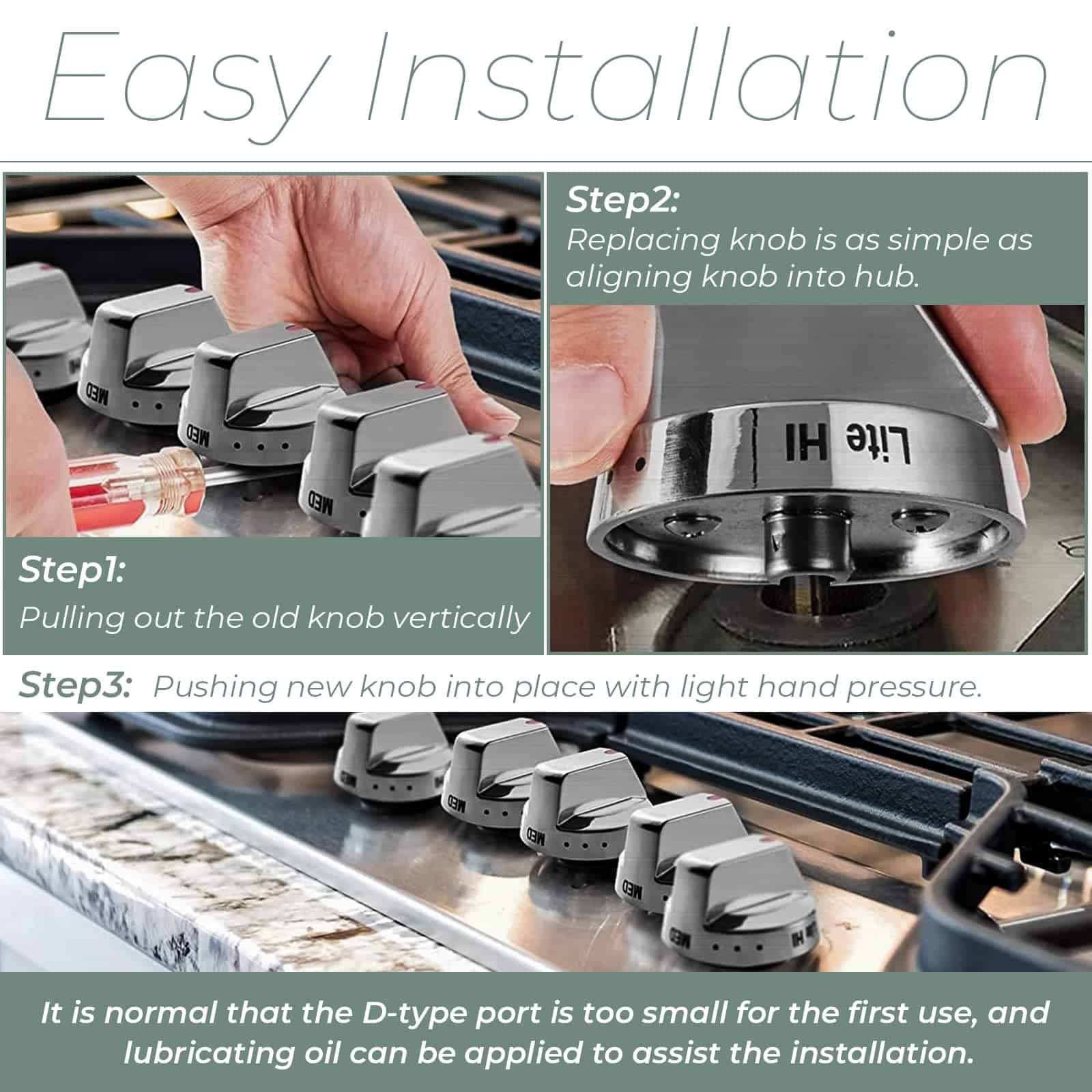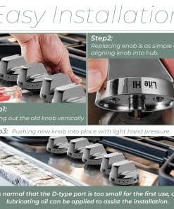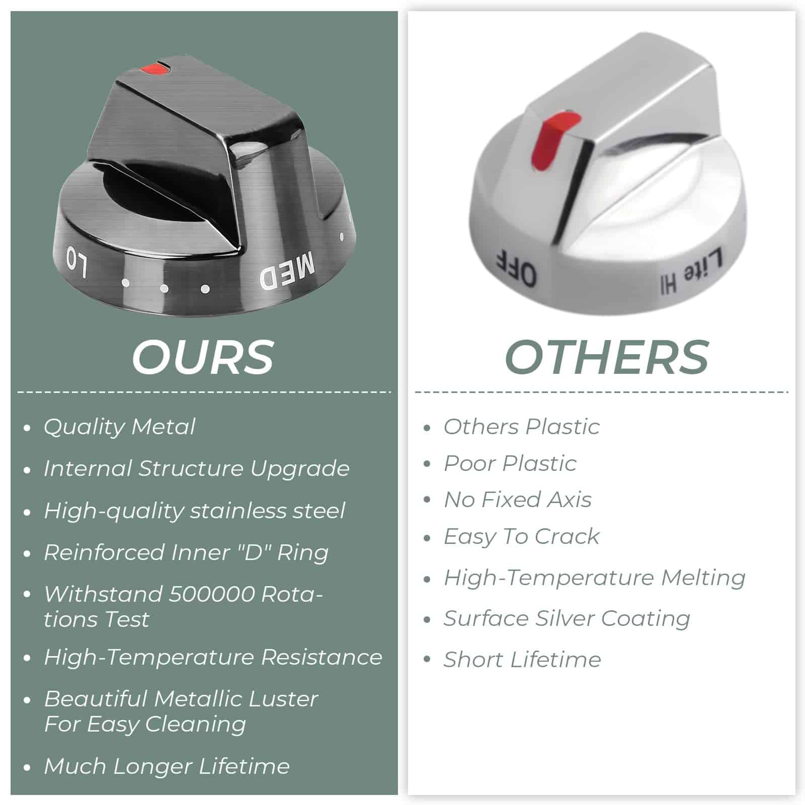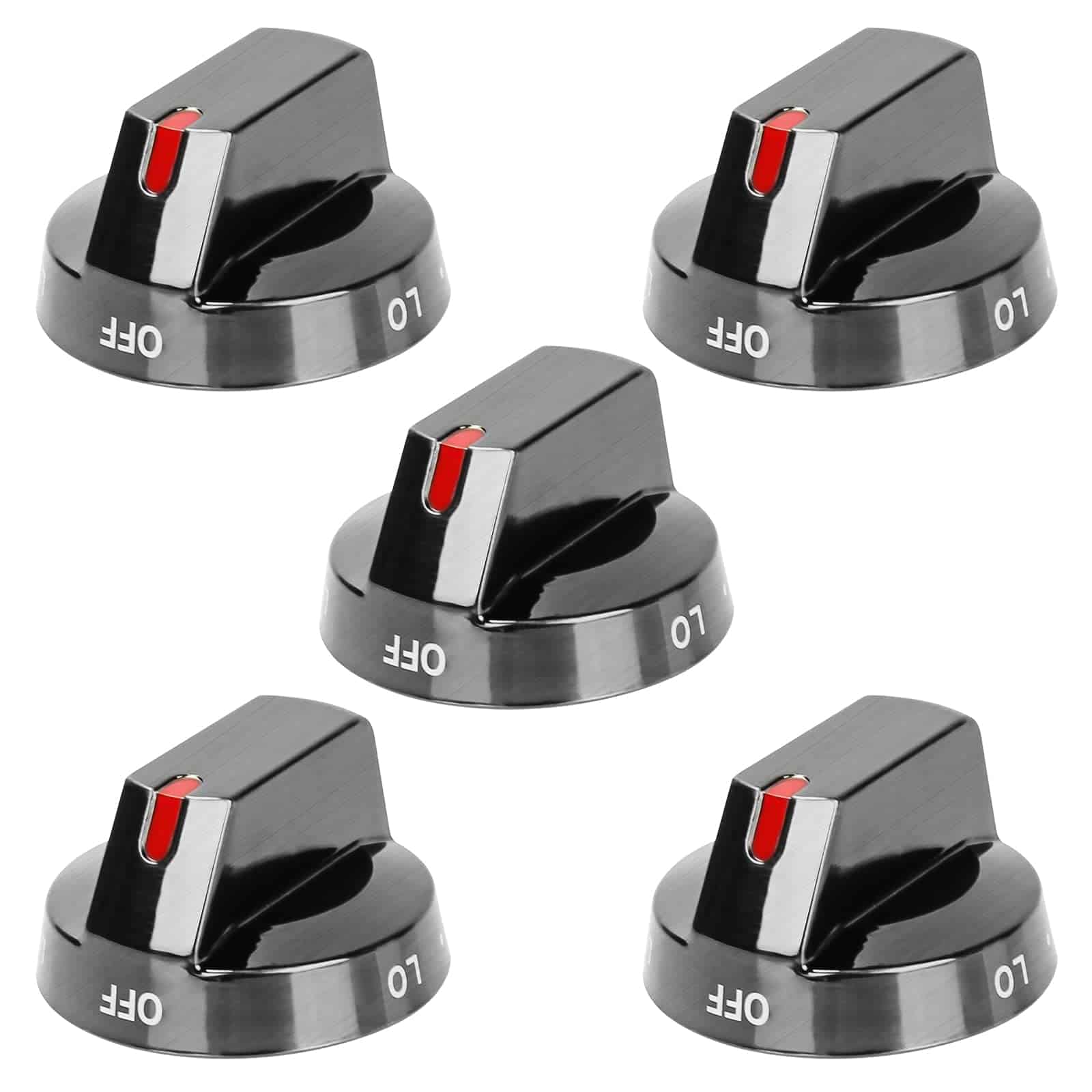 Perillas de Rango Actualizadas DG64-00473B, para Reemplazo de Estufa de Gas Samsung Horno Perillas de Control de Quemador Superior, Material de Acero Inoxidable Negro (2 Unidades). Nuestras perillas tienen un anillo de metal grueso y fuerte para reforzar la parte central de las perillas, garantizando que soporten un uso intensivo y no se agrieten fácilmente. Coincidencia exacta con las perillas de reemplazo de la serie de estufas Samsung. Paquete de 5 perillas para horno / Estufa de Gas / Horno Samsung. Reemplaza el número de pieza DG64-00473B, AP5986692, 3447565, PS11729067, AP5917439. Perillas de rango Samsung reemplazos DG64-00473B Perilla de Control de Quemador Superior se ajusta a los modelos de perillas de repuesto del horno Samsung: NX58M6850SG, NX58J7750SG, NX58J5600SG, NX58K7850SG, NX58R5601SG, NX58T7511SG, B0777LQ41Y, NX58M6850SG/AA-00, NX58J7750SG/AA-00, NX58J5600SG/AA-00, NX58H5600SS, NX58K7850SG/AA-00, NX58M6850SG/AA-01, NX58M6850SG/AA-02, NX58R5601SG/AA-00, etc. (No se listan todos los modelos). Las perillas de estufa de gas Samsung de reemplazo están hechas de material de acero inoxidable duradero, con un anillo interno reforzado «D» que garantiza que permanezcan estables. La superficie gris oscuro cepillada es más brillante y texturizada, tiene las ventajas de resistencia a la corrosión y resistencia a altas temperaturas, es más duradera y tiene una vida útil más larga. Nuestras cubiertas a prueba de niños para perillas de estufa de gas se pueden instalar fácilmente en segundos, sin necesidad de herramientas adicionales. Simplemente saque y retire la perilla de la estufa y reemplácela con la nueva perilla de estufa DG64-00473B para que su estufa vuelva a funcionar en minutos. Diseñado específicamente para el aspecto y la función de las perillas de cocina de la estufa Samsung. Si tiene alguna pregunta sobre nuestra compatibilidad con la perilla de rango de gas / horno / estufa Samsung, comuníquese con nosotros, ya sea antes o después de la venta, le daremos una respuesta satisfactoria dentro de las 24 horas! Nota: Productos NO OEM, Cualquier uso de cualquier nombre de marca o designación de modelo para este producto se hace únicamente para demostrar la compatibilidad.