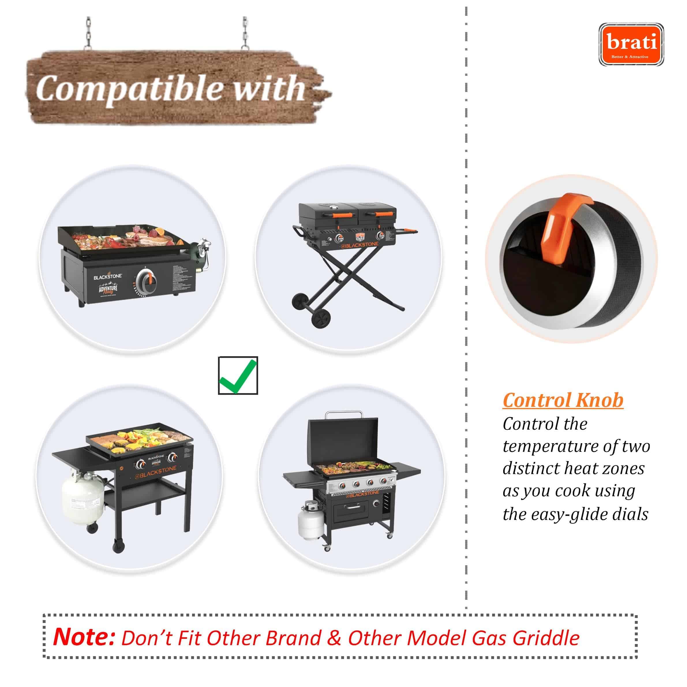 2. Compatible con: la mayoría de las Planchas de Gas de Superficie Plana Blackstone de 17 in/22 in/28 in/36 in, No es para Plancha Eléctrica.
