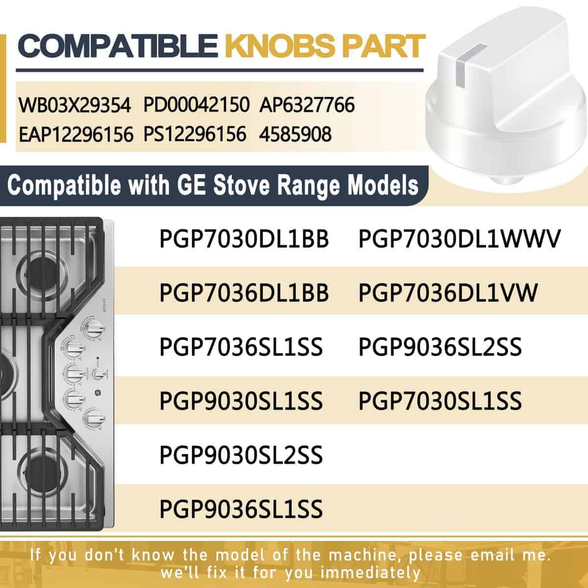 1. Número de parte de repuesto WB03X29354 puede reemplazar la parte de la estufa GE EAP12296156, AP6327766, PD00042150, WB03X29354, PS12296156, 4585908, y más. 2. Modelos compatibles de la serie GE incluyendo pero no limitado a: PGP9030SL1SS, PGP7030SL1SS, PGP7030DL1BB, PGP7030DL1WW, PGP7036DL1BB, PGP7036DL1WW, PGP7036SL1SS, PGP9036SL1SS, PGP9036SL2SS, PGP9036SL2SS, PGP9030SL2SS, etc. (Consulte la página de detalles para modelos específicos de cocinas). 3. Instalación fácil WB03X29354 perilla de la cocina de GE es fácil de usar y rápida, no se necesitan herramientas, fácil de instalar perillas de quemador, rápidamente devuelva su cocina a su funcionamiento normal, ahorrándole tiempo y dinero. 4. Garantía de calidad Las perillas de quemador de superficie GE WB03X29354 están hechas de material de acero inoxidable de alta calidad, que es más fuerte y duradero que otros productos, resistente al calor y a la corrosión, y no se deforma y oxida fácilmente. 5. Nota importante Es importante asegurarse de que el número de modelo sea compatible con el accesorio original antes de comprar. Tenemos un excelente equipo de servicio, si tiene alguna pregunta, puede contactarnos.