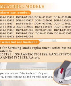 5. SERVICIO INTIMO: Las perillas de estufa de gas diseñadas para piezas de repuesto de horno de estufa Samsung compatibles ajustarán mejor tu horno de estufa que las perillas genéricas y proporcionarán mejores resultados de cocción. La forma de distinguir estas perillas DG94-03500A/Z es que hay diferentes combinaciones de letras dentro de las perillas, como AA/AU/AV/AW/AX. Si tienes alguna pregunta o consulta sobre modelos compatibles durante el uso de repuestos de perilla de estufa Samsung compatibles, no dudes en contactarnos.