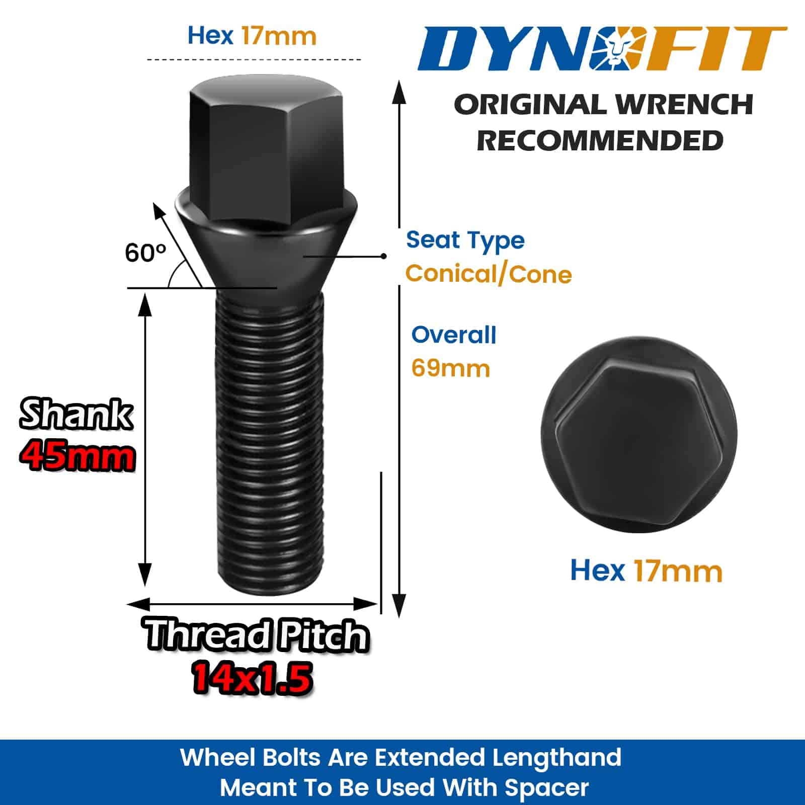 Especificaciones: pernos de rueda ET de 45 mm para espaciadores de rueda (generalmente de 20 mm de grosor) paso de rosca 14-1.5 (juego de 20), se recomienda llave de 17 mm