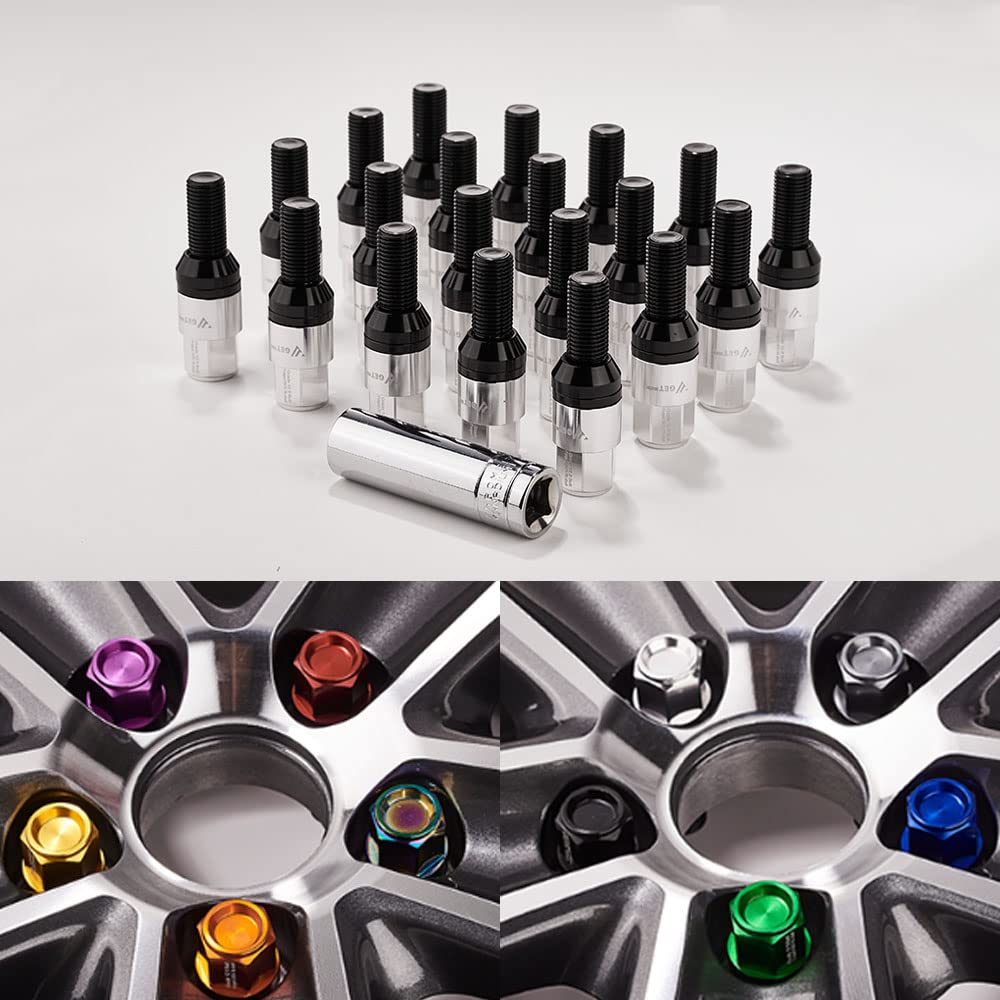 Pernos de rueda M14x1.25, juego de 20pcs 28mm vástago 17mm hex 3 pulgadas largo pernos forjados para B.MW 1-8Series X1 X2 X3 X4 X5 X6 X7 X8 i3 i4 ix M2 M3 M4 M5 M6 M8 Z4 y más. Este juego de pernos de rueda presenta un diseño de asiento flotante que evita problemas de ensamblaje y desalineación, asegurando un ajuste seguro en su vehículo B.MW. Fabricados con material forjado 35CrMo y tratados térmicamente a 12.9 grados, estos pernos ofrecen un rendimiento excepcional y evitan la expansión y fractura de los pernos originales. Con una especificación precisa de paso de rosca M14x1.25, llave de 17mm, vástago de 28mm, asiento cónico de 60 grados y longitud de 75mm, estos pernos son fáciles de instalar con una llave de mano. Además, han pasado rigurosas pruebas de carga de prueba, pulverización de sal, dureza y rosca, lo que garantiza su calidad y durabilidad. Con un acabado en color plata y una resistencia excepcional a altas temperaturas, estos pernos de rueda son la elección ideal para mantenimiento o personalización de su vehículo B.MW.
