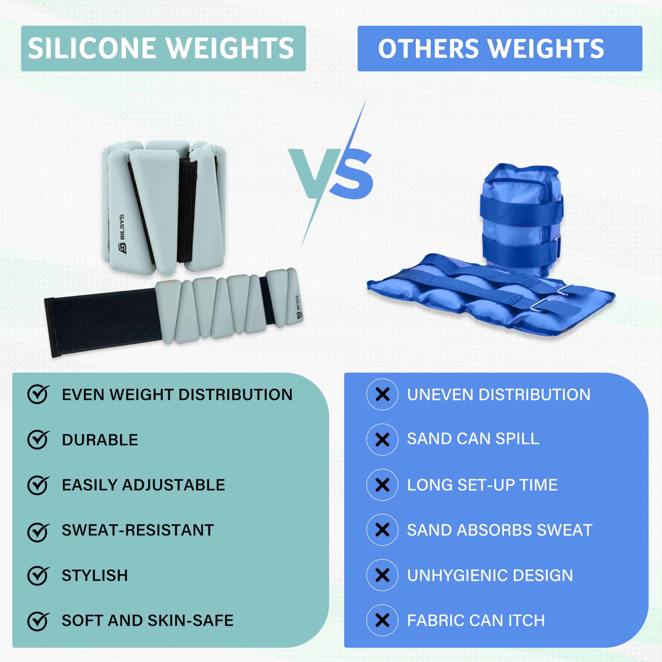 ¡Presentamos las Pesas Ajustables de Muñeca y Tobillo de Silicona de Bilys, el accesorio fitness perfecto para potenciar tus entrenamientos! Ya sea que estés corriendo, bailando, haciendo Pilates o nadando, estas versátiles pesas de muñeca y tobillo están diseñadas para integrarse perfectamente en tu rutina, ayudándote a desarrollar fuerza, tonificar músculos y aumentar la resistencia. Diseñadas para ofrecer comodidad y rendimiento, cada peso en este set de dos pesa 1 lb y está hecho de silicona suave y duradera que es delicada con la piel pero resistente para entrenamientos intensos. El diseño ajustable garantiza un ajuste perfecto en cualquier muñeca, por lo que son perfectas tanto para hombres como para mujeres. La construcción de silicona asegura que estas pesas no se resbalen ni se deslicen durante su uso, incluso en actividades de alto impacto. Si buscas desarrollar fuerza, aumentar la intensidad de tu entrenamiento o simplemente tonificar tus brazos, estas pesas ajustables de 1 lb para muñeca son el complemento perfecto para tu equipamiento fitness. Duraderas, cómodas y fáciles de usar, son el compañero ideal para cualquiera que busque llevar su entrenamiento al siguiente nivel.