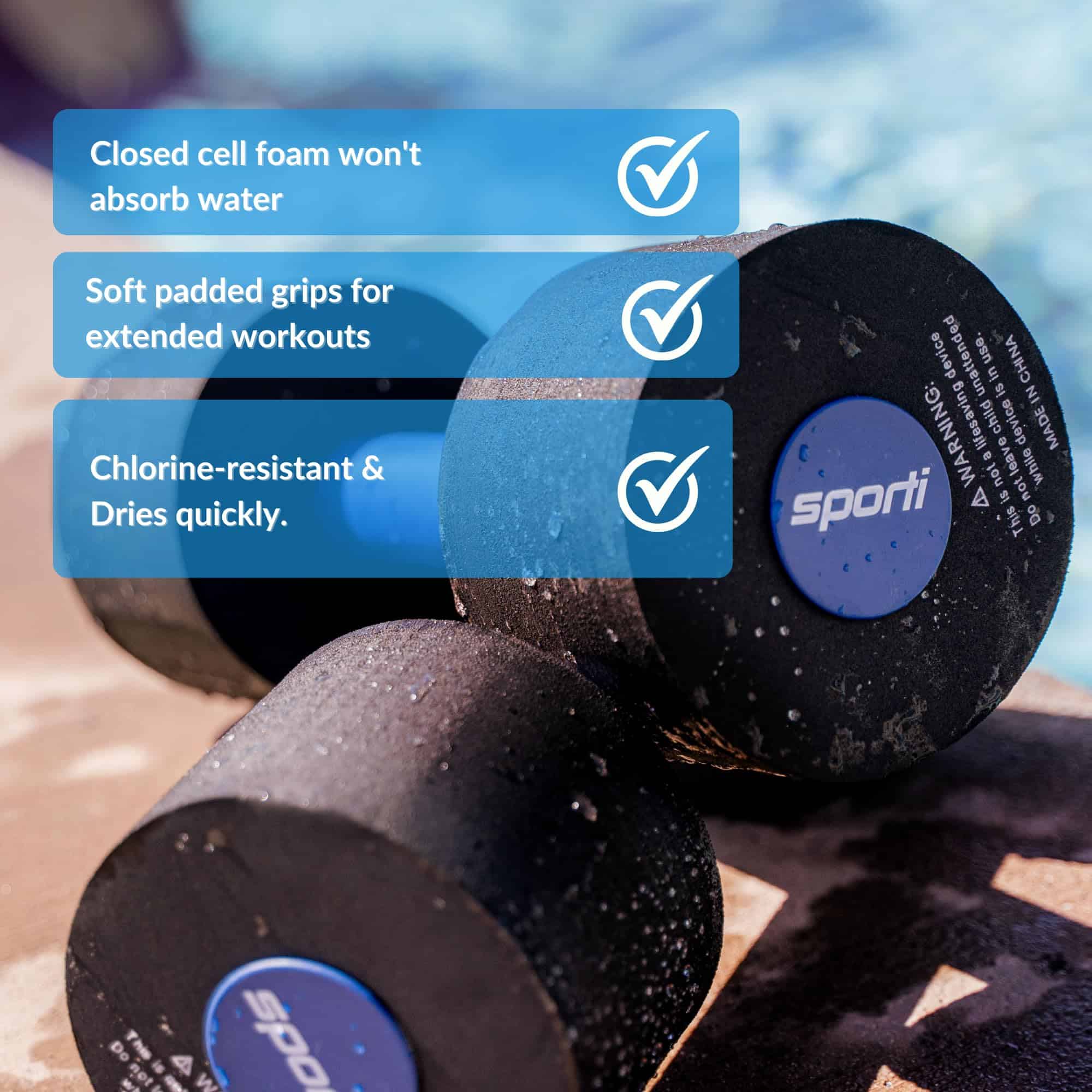 6. POTENCIA TUS ENTRENAMIENTOS EN EL AGUA: Las Pesas de Agua para Fitness Acuático de Sporti proporcionan resistencia para una rutina de ejercicio acuático más efectiva y desafiante.