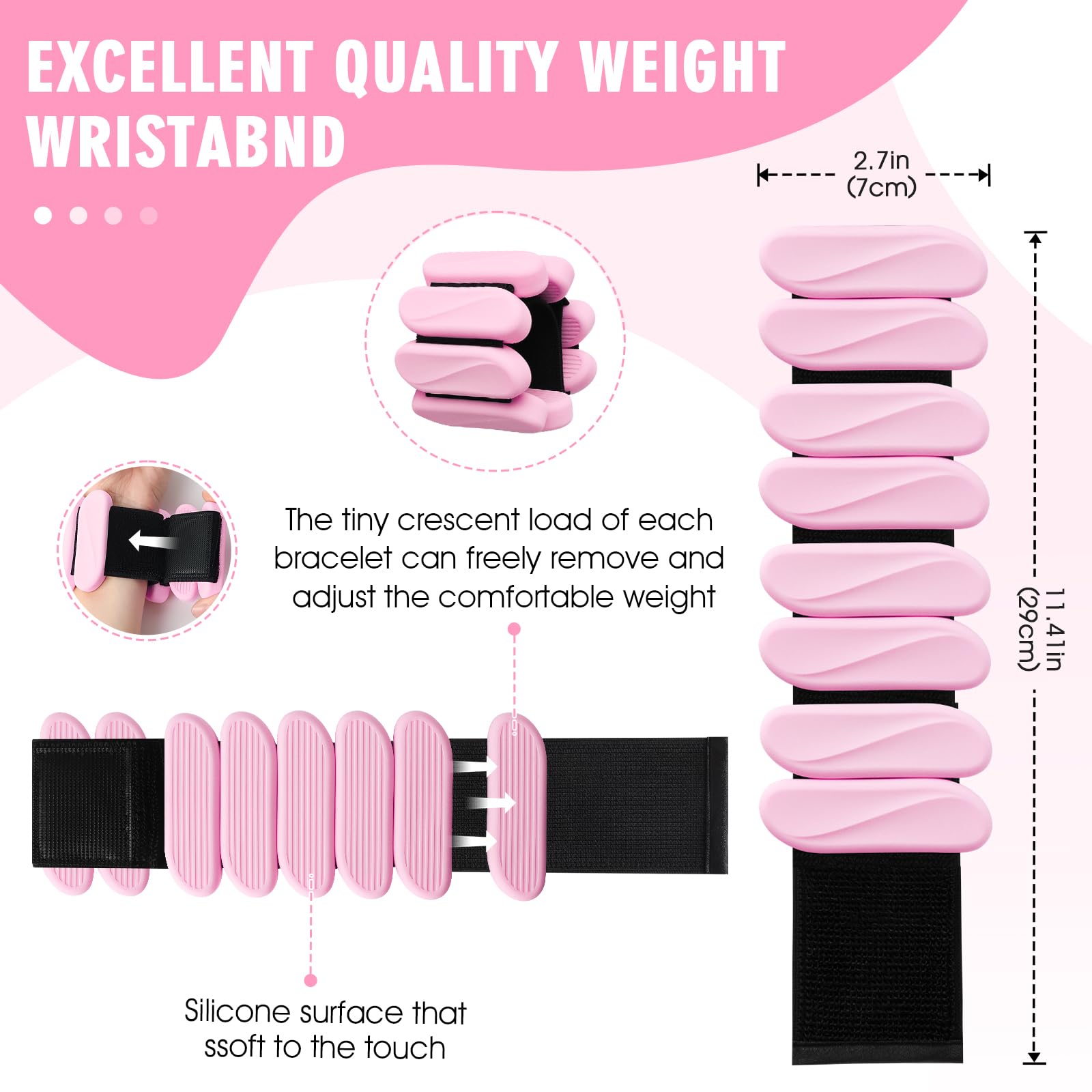 1. BRAZALETES DE PESO DE MUÑECA: El juego de pesas de muñeca incluye 2 brazaletes de peso de silicona ajustables, la longitud x ancho del peso de muñeca son de 30CM / 11.8IN x 7CM / 2.7IN, 1 libra de peso para cada uno y esto es un ejercicio básico adecuado para mujeres o ejercitadores de necesidades primarias en la vida diaria, es una elección perfecta para obtener una vida saludable.
