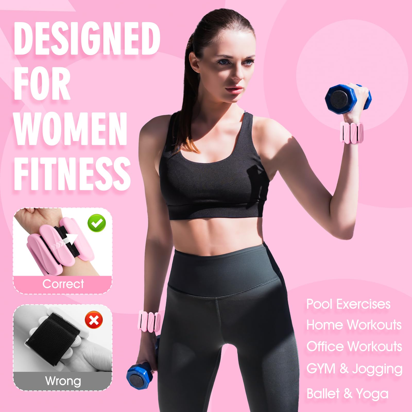 Pesas de muñeca, 2Pack Pesas de muñeca y -Rosa