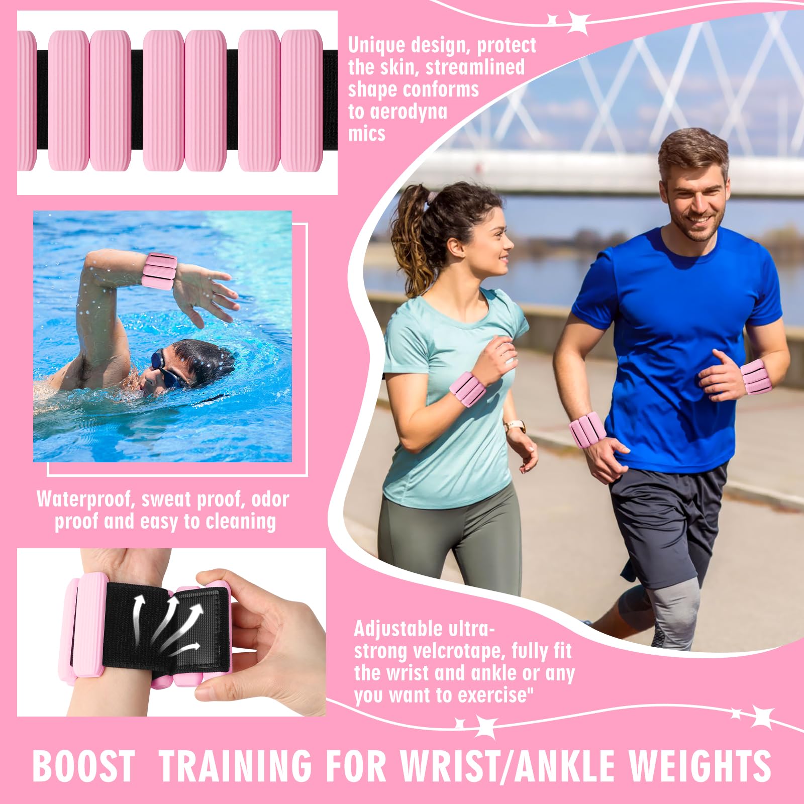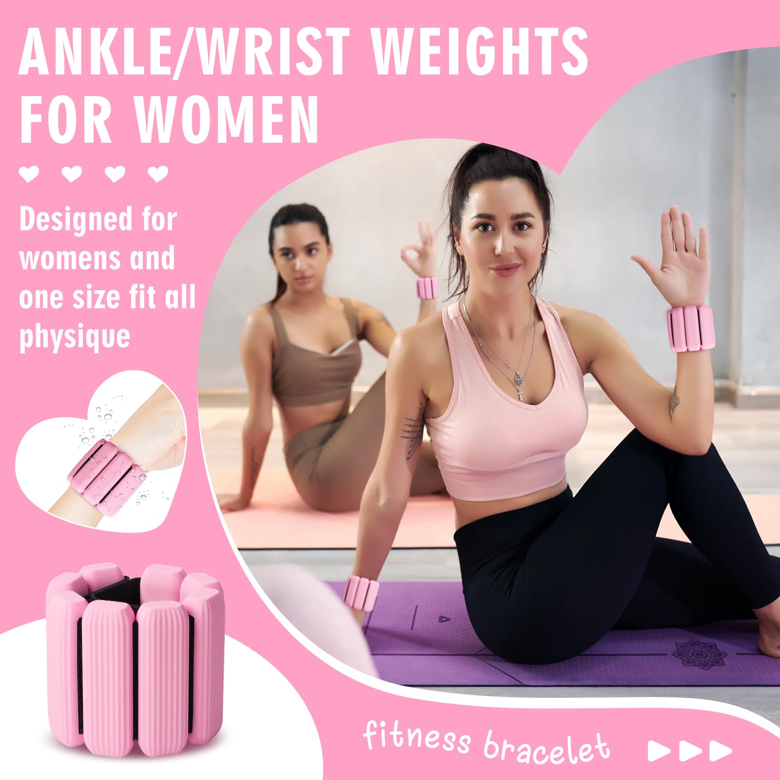 Pesas de Muñeca Ajustables para Mujeres y -Rosa