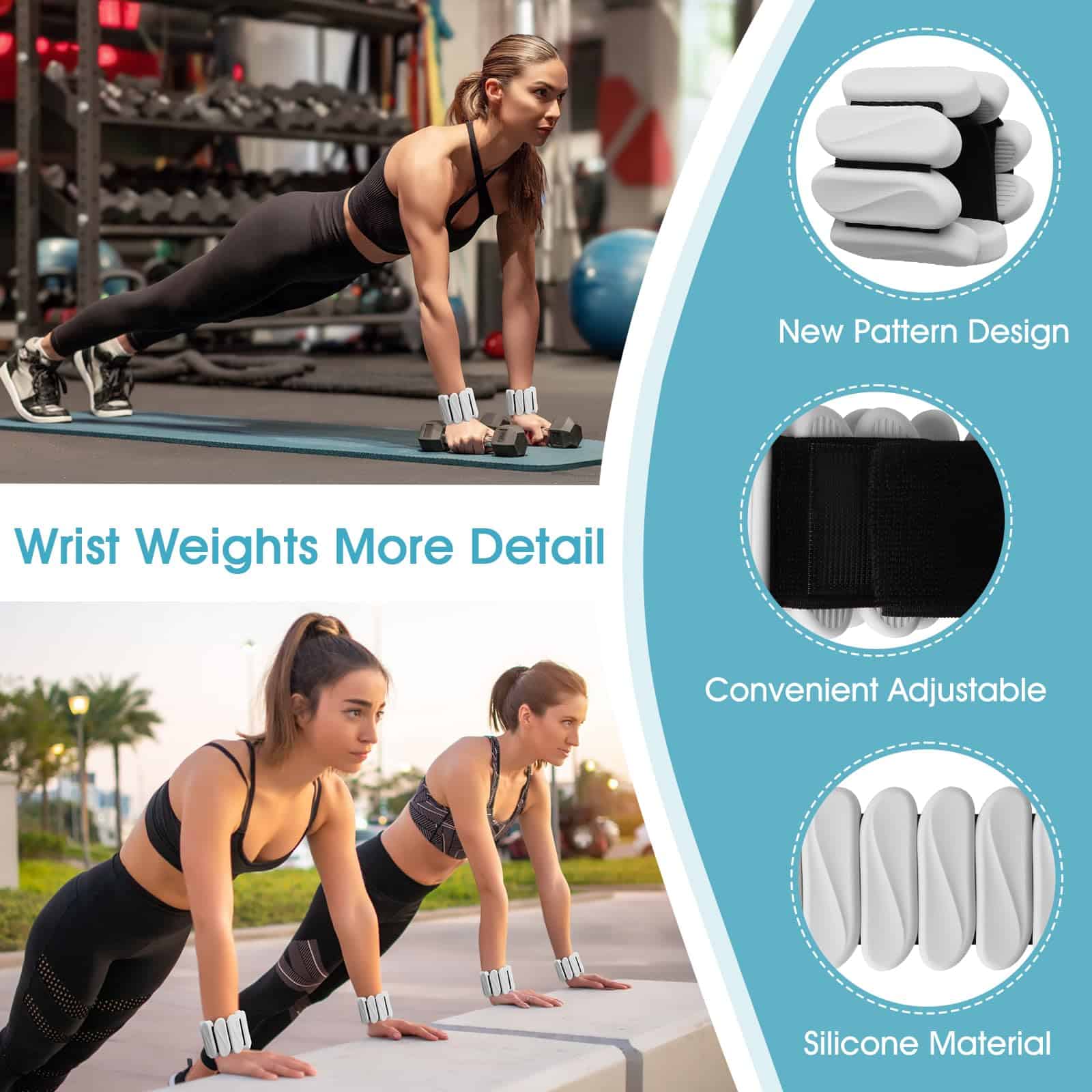 2. DISEÑO DE CALIDAD PREMIUM: Fabricadas con material de silicona suave e impermeable, nuestras pesas de muñeca ofrecen una experiencia amigable para la piel y resistente al sudor. La forma única permite un movimiento sin restricciones, asegurando un ajuste ceñido alrededor de tus muñecas y tobillos. Personaliza tu entrenamiento ajustando la carga para obtener la máxima comodidad y eficacia. 3. AJUSTABLES Y DURADERAS: ¡Dile adiós a las pesas de tobillo pesadas tradicionales! Nuestras pesas de pilates para tobillos cuentan con cinta de velcro ultra resistente para un ajuste seguro. Diseñadas para durar, estas pesas proporcionan la resistencia perfecta sin comprometer la comodidad. Mejora tu fuerza y resistencia con facilidad. 4. MEJORA DEL FITNESS: Diseñadas para mujeres de todos los tipos de cuerpo, estas pulseras de silicona ajustables son tu compañero de fitness ideal. Ya sea yoga, running, aeróbicos o entrenamiento core, estas pesas intensifican tu entrenamiento, ayudándote a alcanzar tus metas de fitness de manera más rápida y efectiva. 5. TRANSFORMA TU ENTRENAMIENTO: Apunta a grupos musculares específicos con precisión y evita la tensión en las articulaciones con nuestras pesas versátiles. Al incorporarlas en tu rutina, no solo mejoras el rendimiento, sino que también proteges tus articulaciones del estrés repetitivo. Acepta un tú más saludable y más fuerte con cada sesión de entrenamiento.