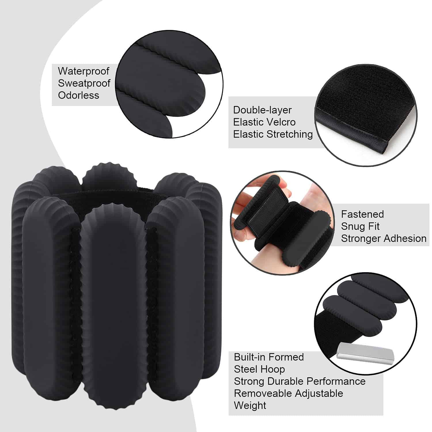 3. UN TAMAÑO PARA TODO. Pesas de muñeca y tobillo especialmente diseñadas para Pilates para mujeres. La superficie de las pulseras de peso de muñeca está hecha de material de silicona suave premium y anillo de acero inoxidable integrado, diseño impermeable y a prueba de sudor. Ofrece una flexibilidad y comodidad excepcionales. Fácil de limpiar y sin olores, el velcro elástico ajustable hace que estas pesas de muñeca se ajusten a todos.