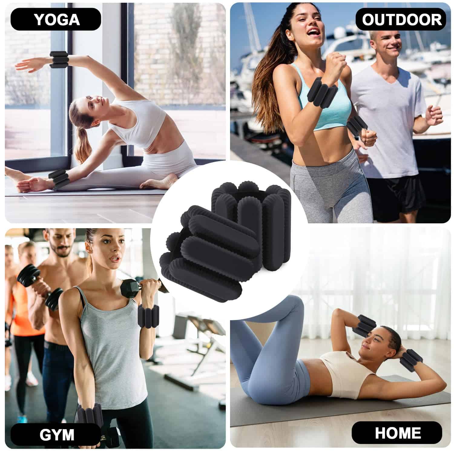4. Entrenamientos versátiles. Pesas de muñeca ideales para Pilates, caminar, yoga, natación, correr lento, ciclismo, etc. Las pesas de muñeca mejoran la eficiencia de su entrenamiento. También son excelentes como pesas de tobillo para mujeres. Como diseño especial, pueden prevenir absolutamente el esfuerzo muscular y reducir el riesgo de lesiones por tareas repetitivas, manteniendo sus articulaciones sanas.