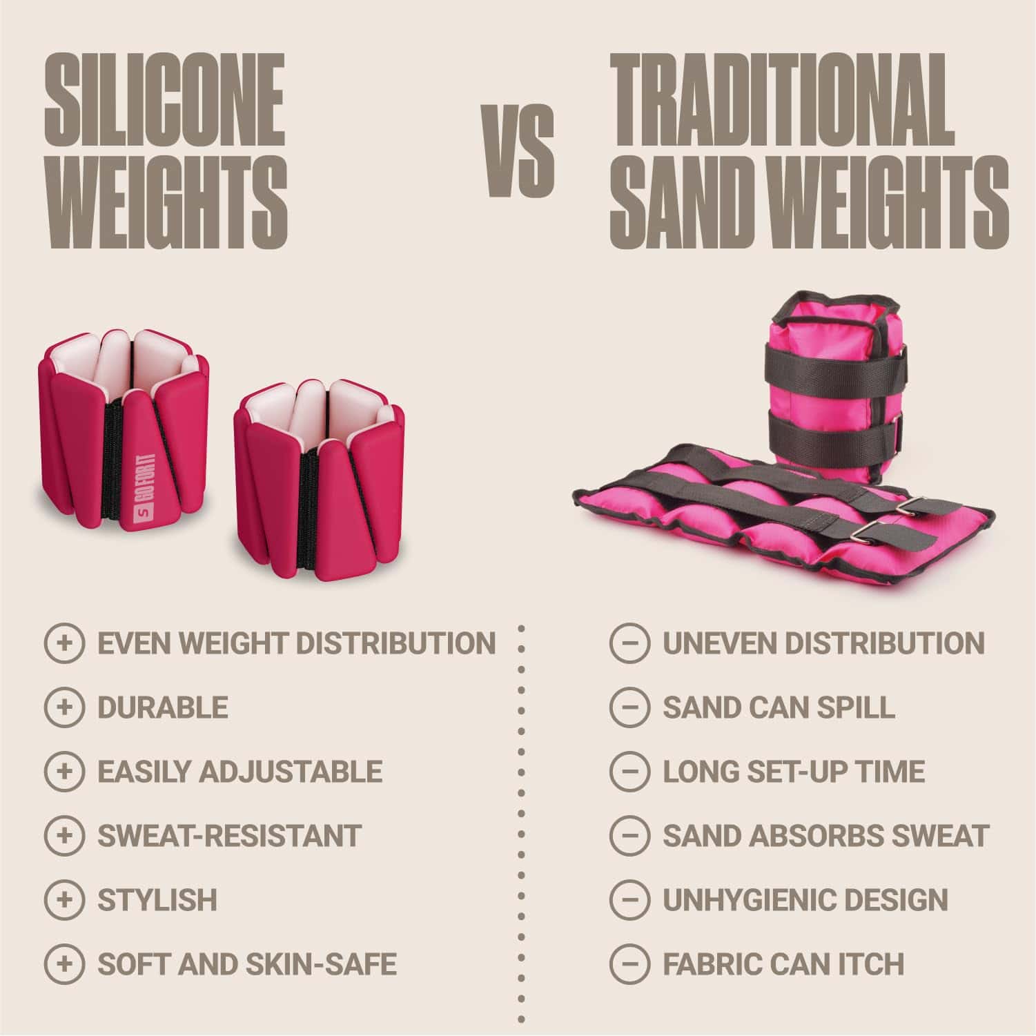 4. SIENTE LA DIFERENCIA: Cada peso de tobillo ponderado está hecho de silicona súper suave, a diferencia de las pesas anticuadas. Nuestras pulseras con peso están diseñadas específicamente para no estorbar y te permiten hacer ejercicio sin esfuerzo donde sea y cuando sea.
