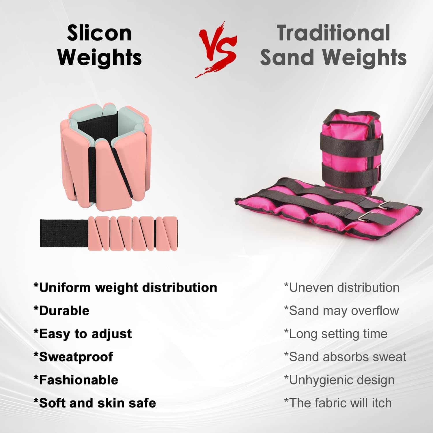 Pesas de Muñeca y Tobillo, 2 PCS Bandas -Rosa