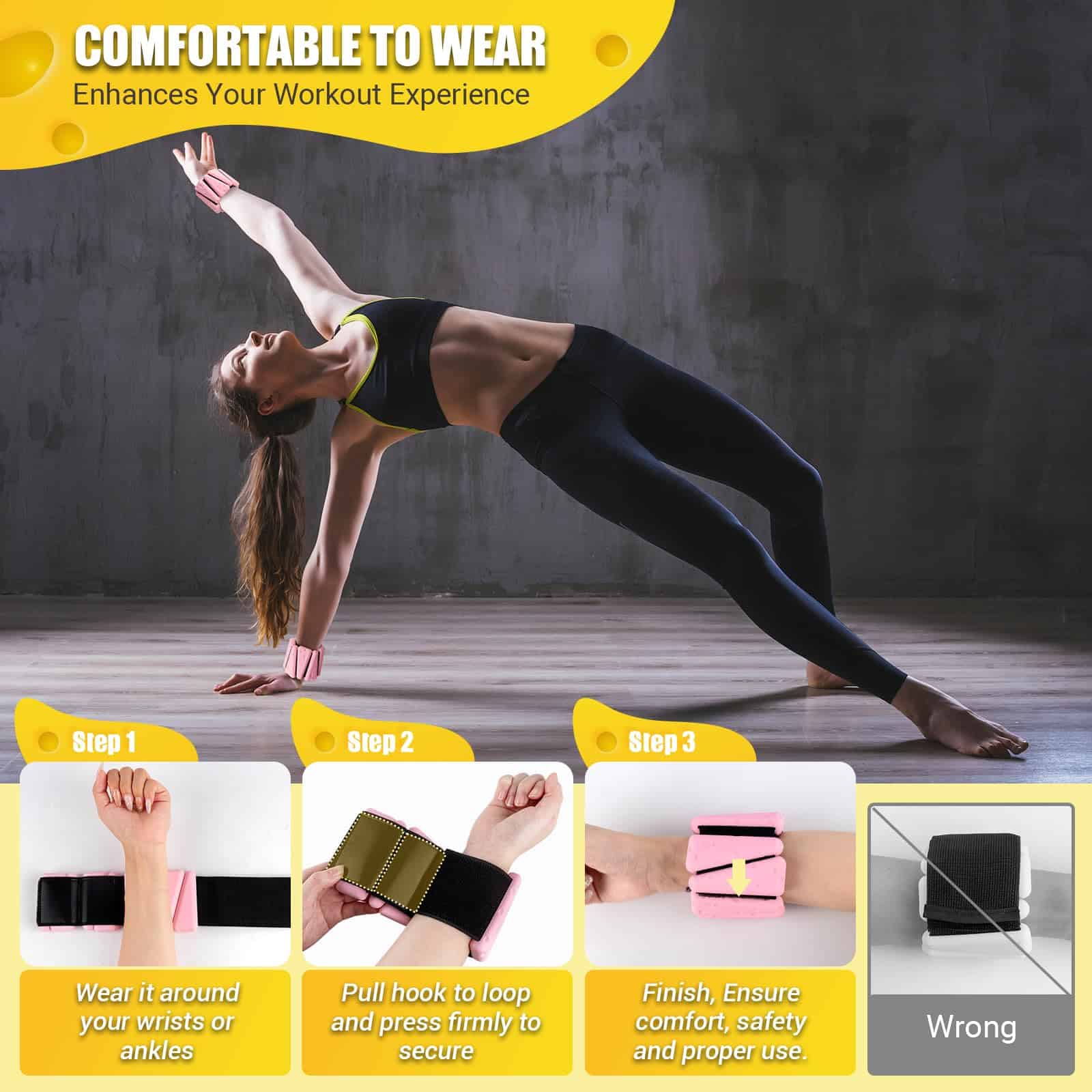 Pesas de muñeca y tobillo Bangles 4lbs para mujeres,